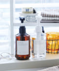 ●シンプルなデザインで残量が確認しやすい透明タイプの詰め替えボトル。