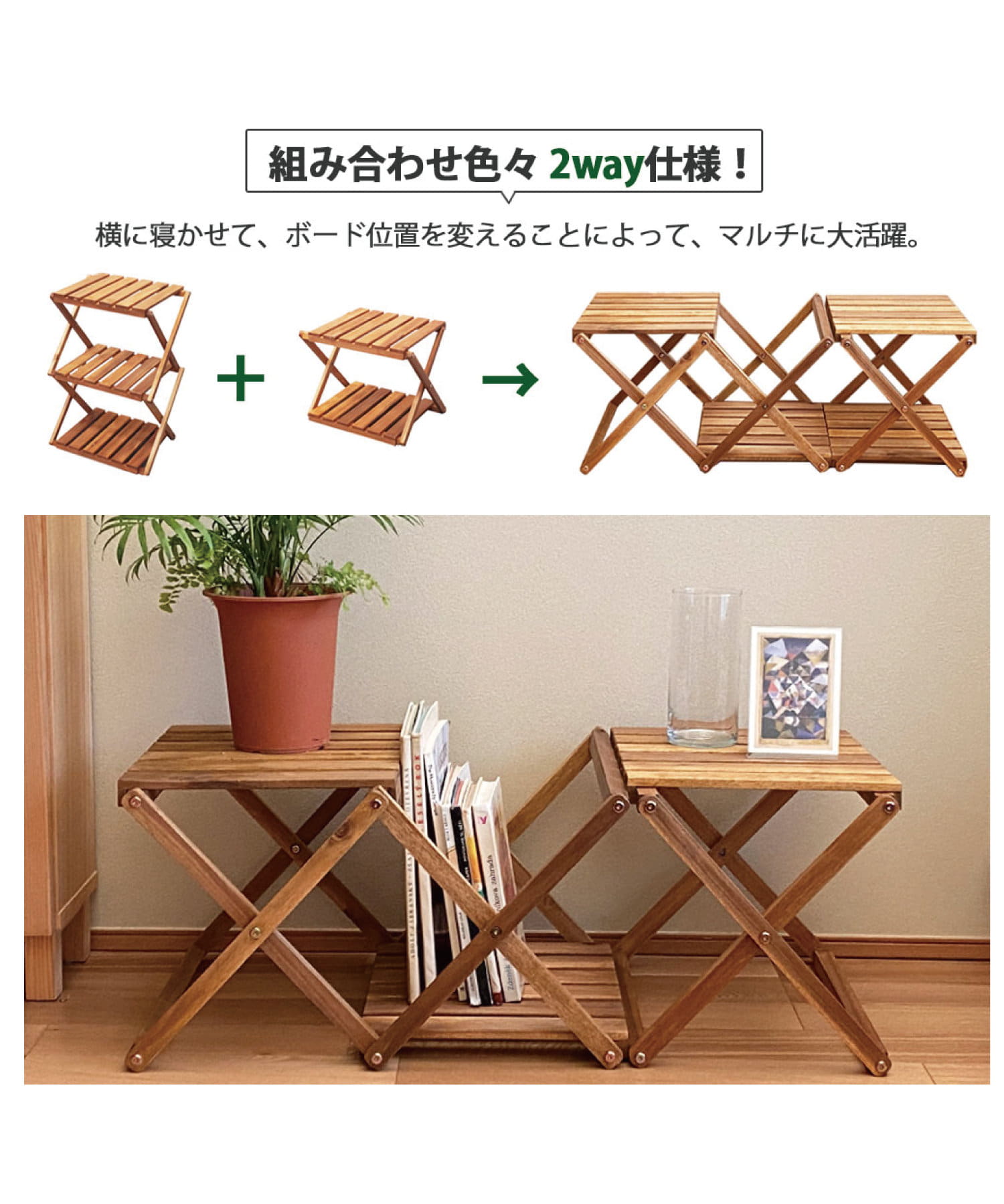 ●たて・よこ・ボード位置をシーンに合わせて変えられるマルチラック。