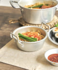 ●軽くて錆びにくく、熱通しの良いアルミ素材のミニ両手鍋。