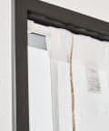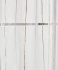 ●透け感のある生地に、ベージュとホワイトのストライプの刺繍が施されたカーテン。