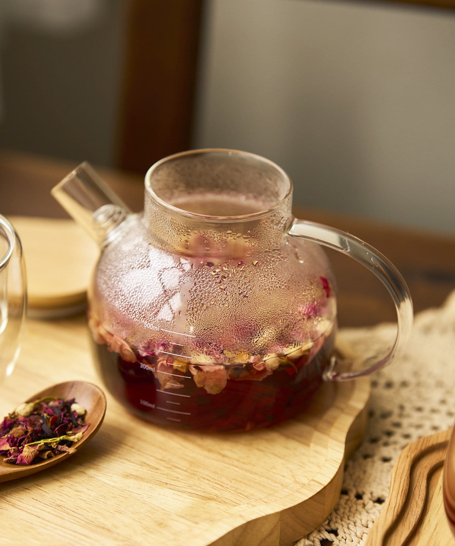 購入場所:店舗こちらのガラスポットを使用すると美味しいさ倍増します!見た目も可愛いですが、使い勝手もいいです。特にお花の入ったハーブティーを入れると色も綺麗で癒されます。素敵なティータイムを過ごせます。