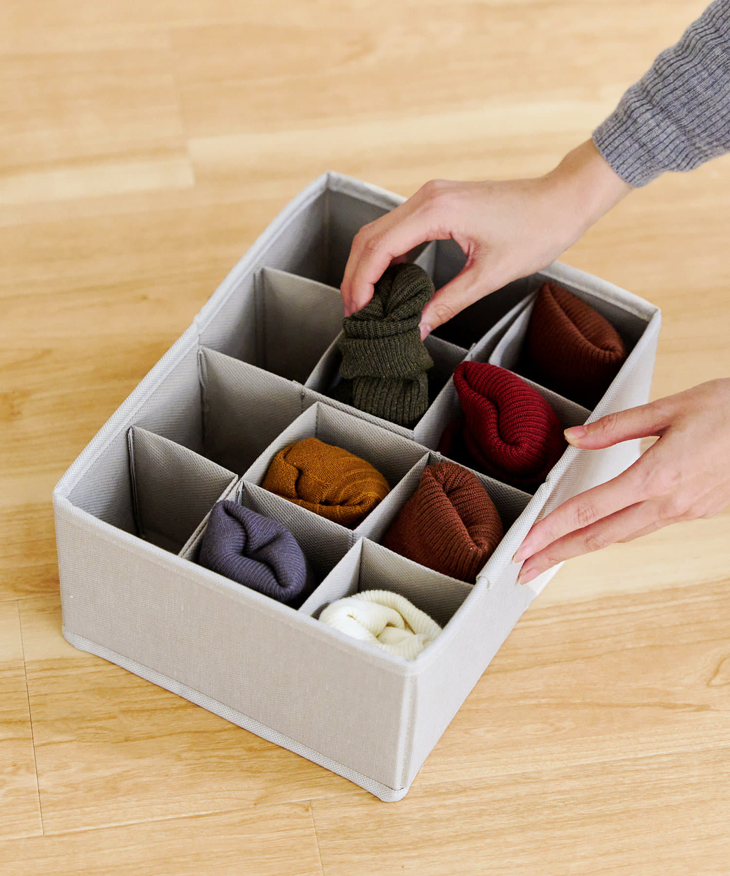 ●ごちゃつきがちな靴下やハンカチなどの小物を、仕切りですっきり整理整頓◎