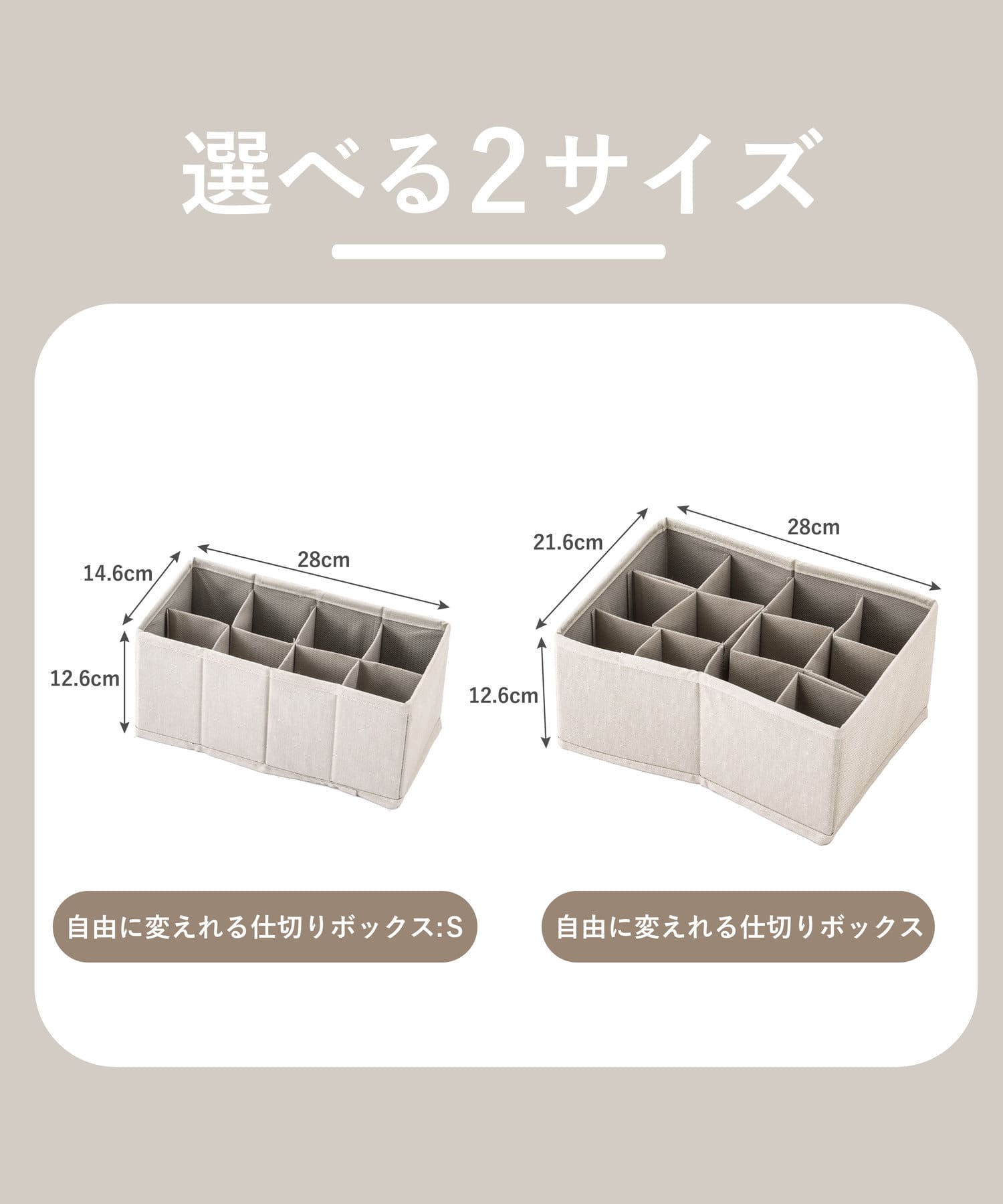●本品より小さめの自由に変えれる仕切りボックス:Sもご用意しております。