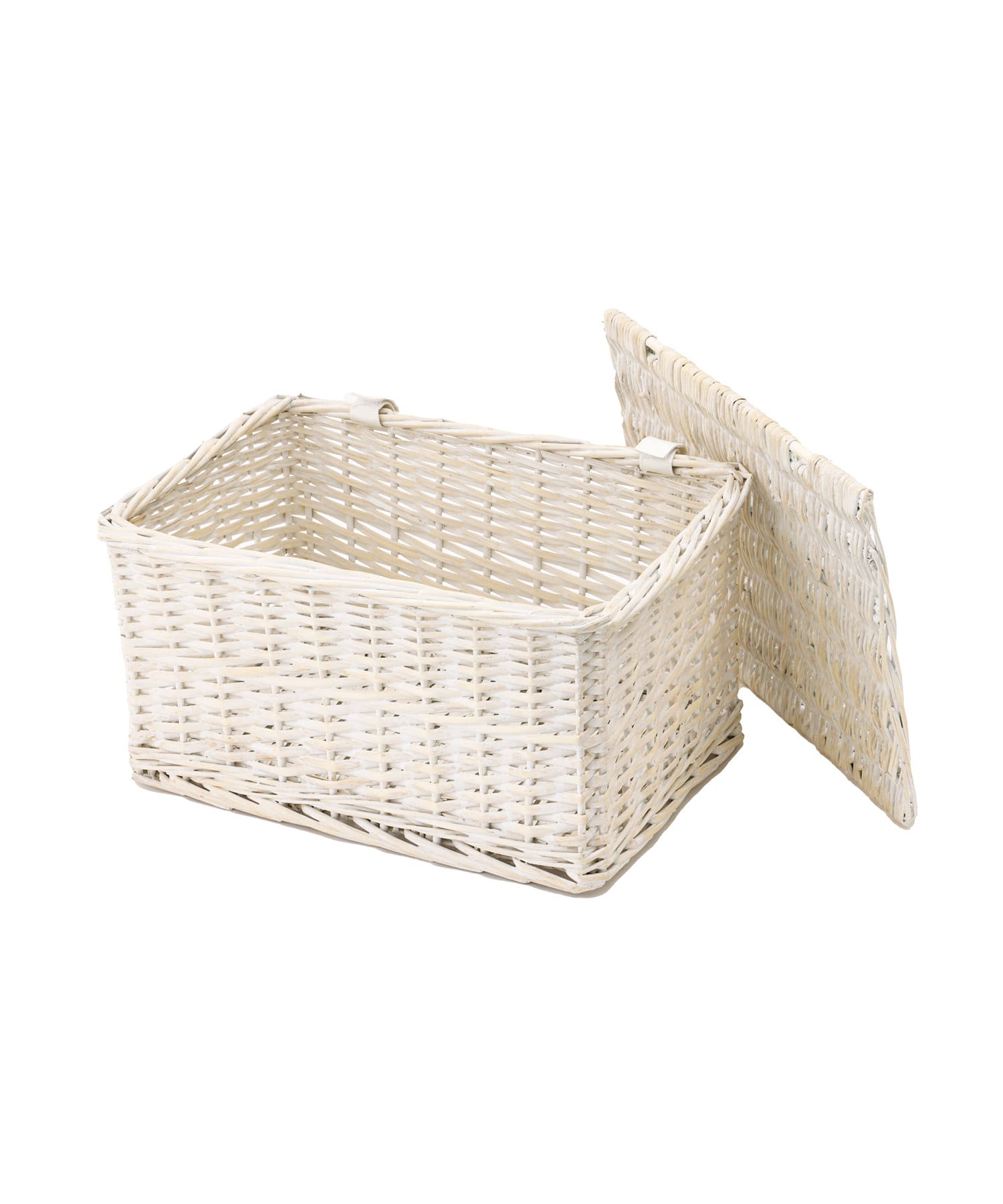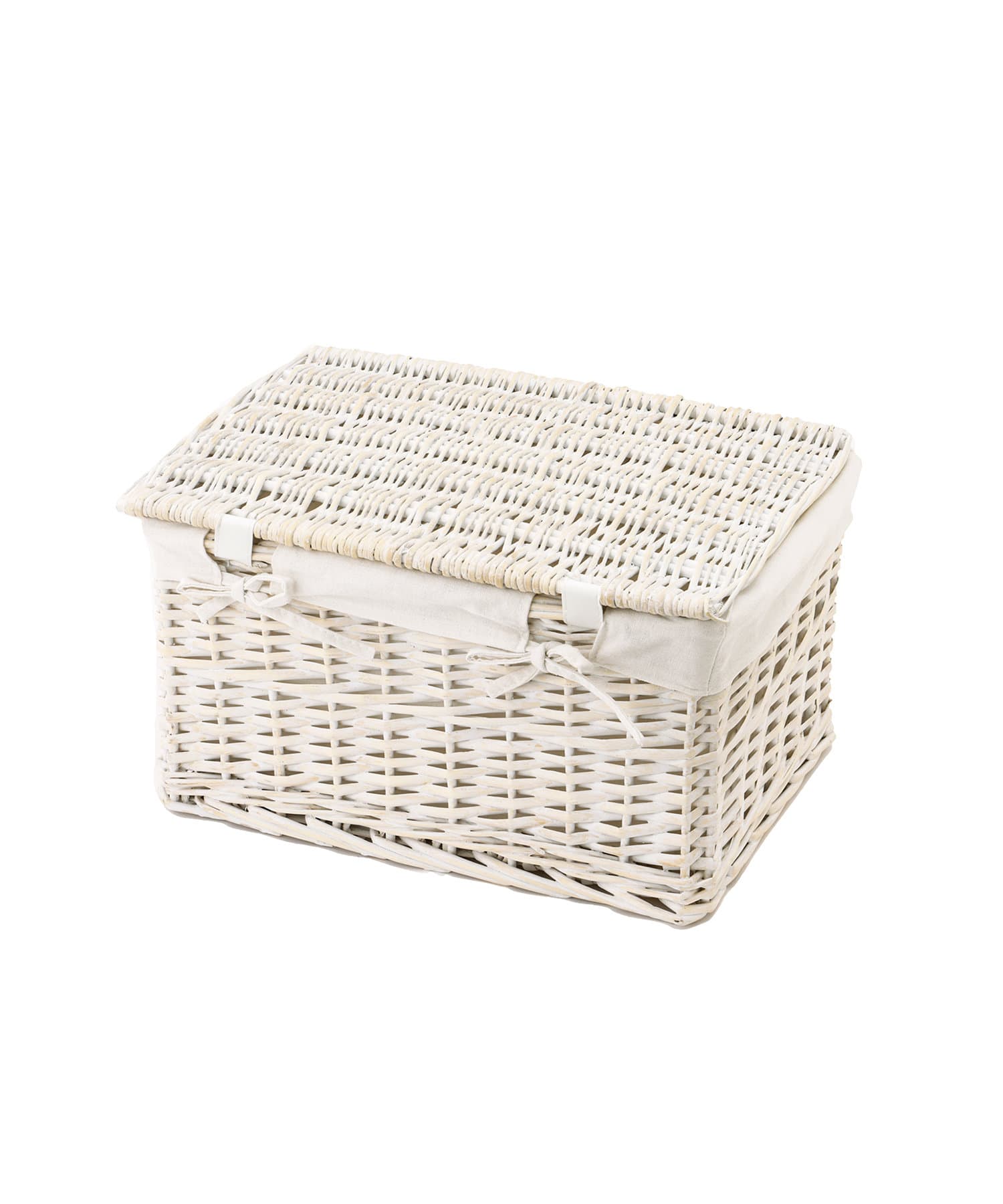 ホワイト柳蓋つきバスケット
