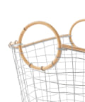 ●無機質なワイヤーとナチュラルな雰囲気のラタンが組み合わさったバスケットです。