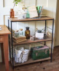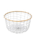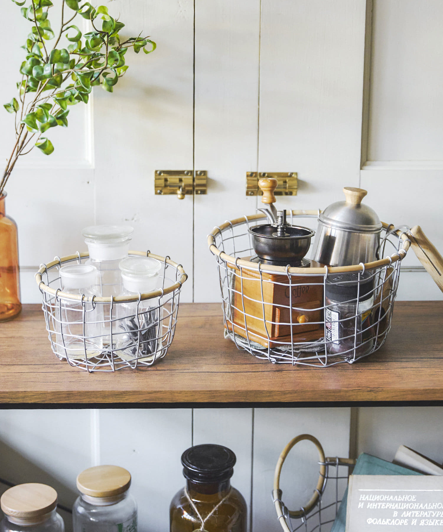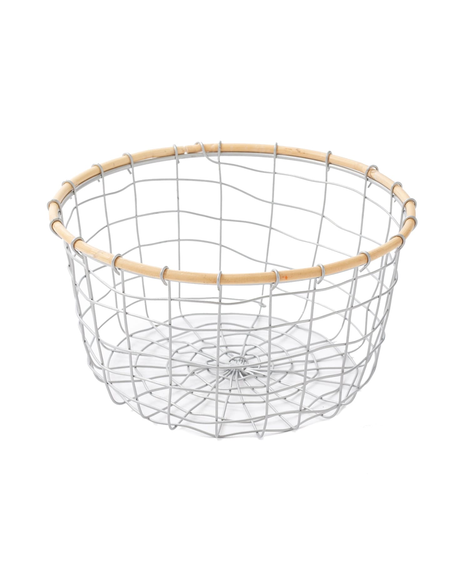 ●無機質なワイヤーとナチュラルな雰囲気のラタンが組み合わさったバスケットです。