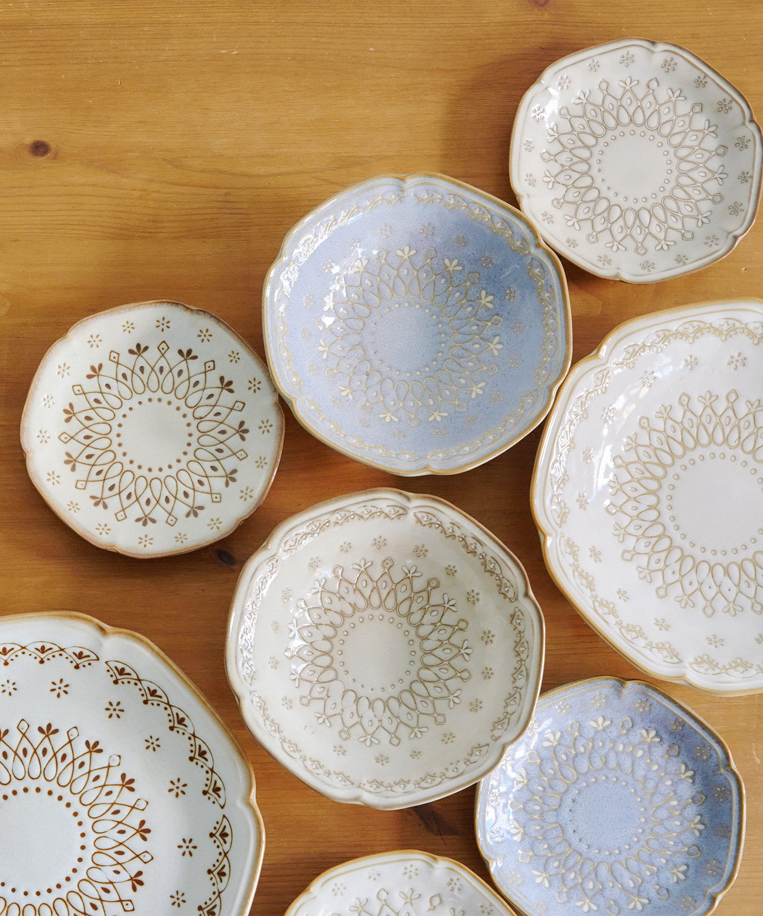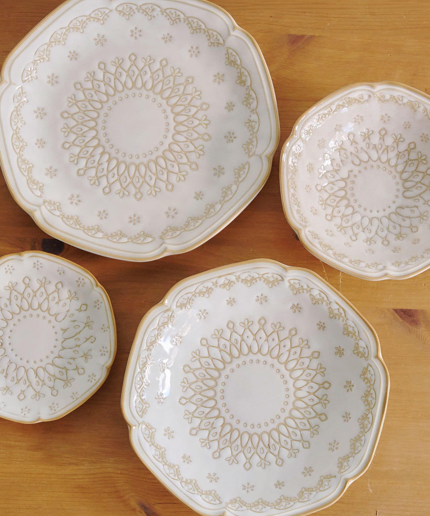 ●細かくて繊細なデザインが上品で食卓を華やかにしてくれるプレート。