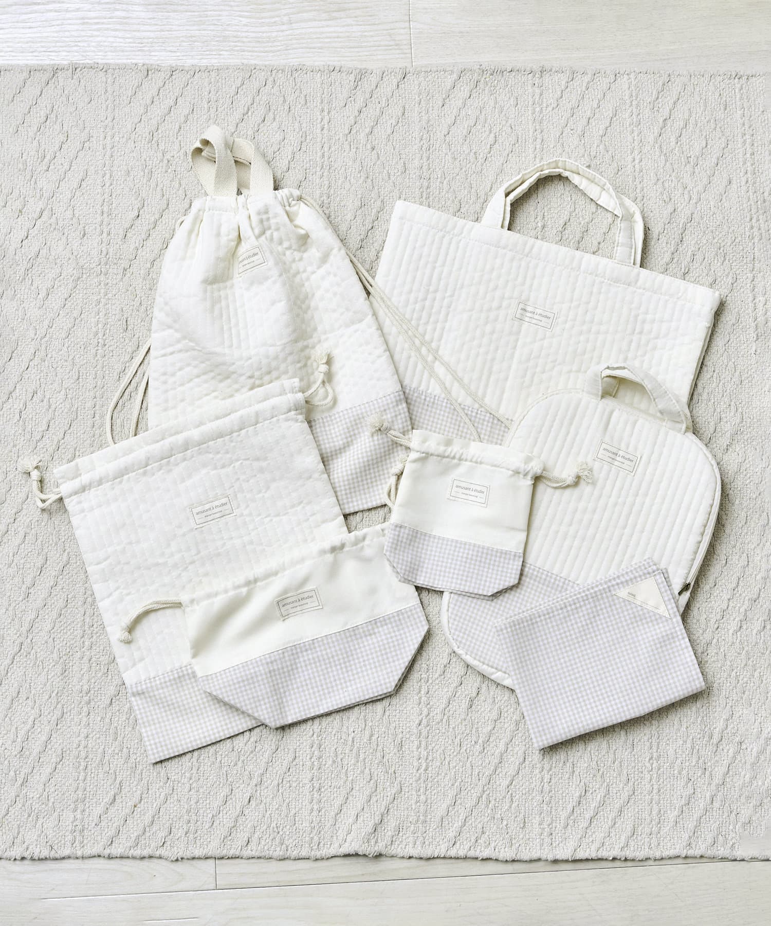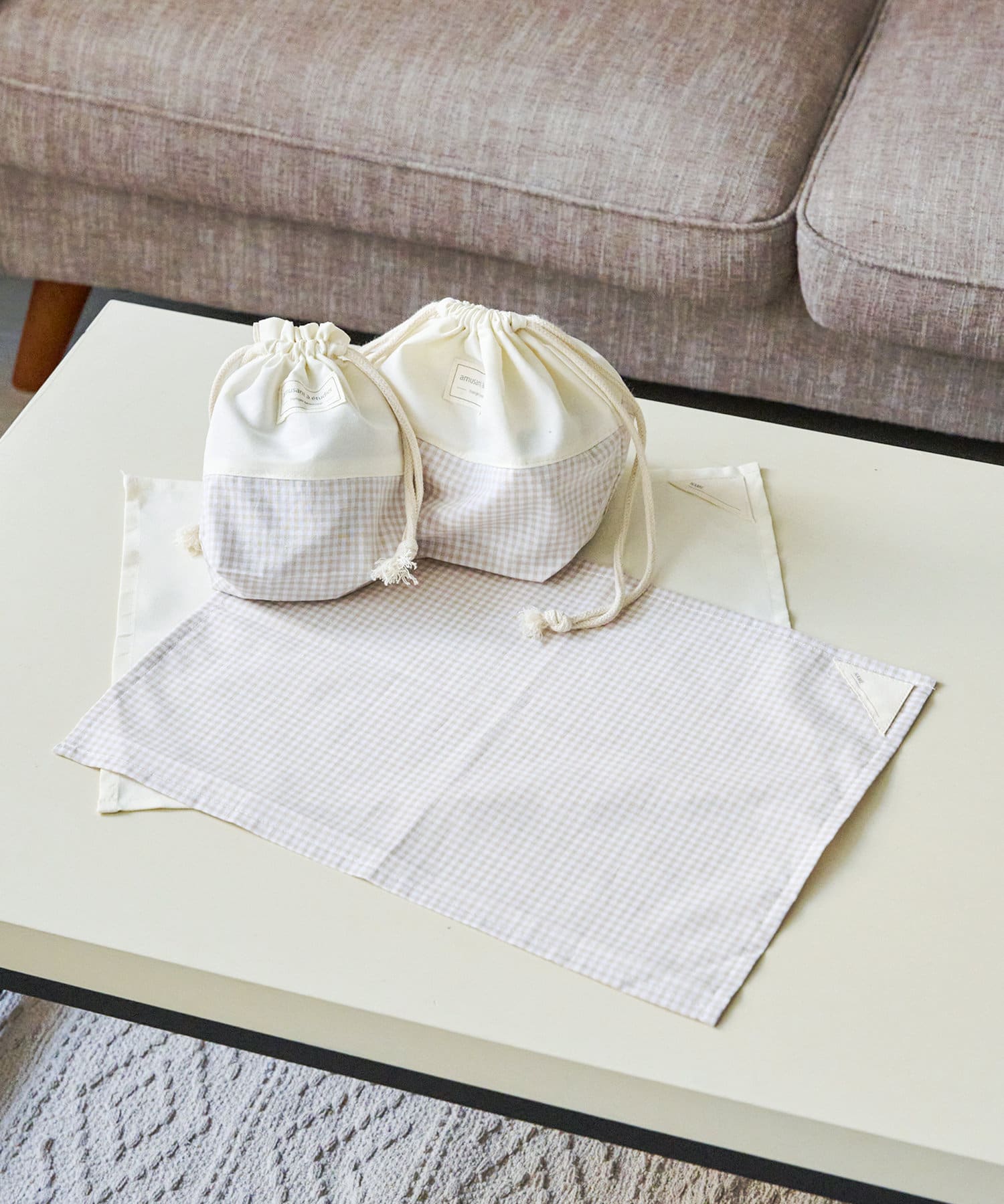 ●お食事やうがい、歯みがき用のコップが収納できるマチ付き巾着です。
