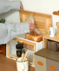 購入場所:パルクローゼットごちゃごちゃしたキッチンの小物や食パンなど収納できてスッキリ収まりました。