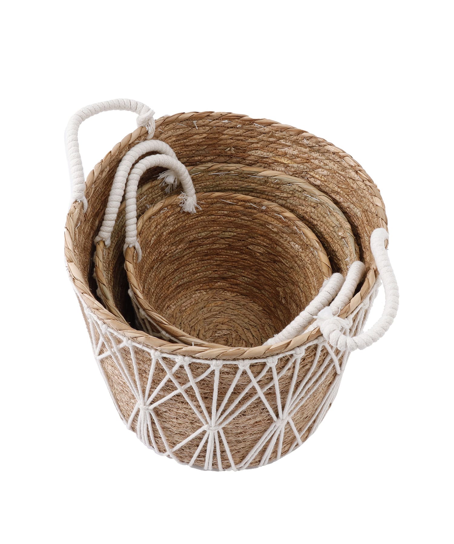 ハンドル付きマクラメバスケット3点セット