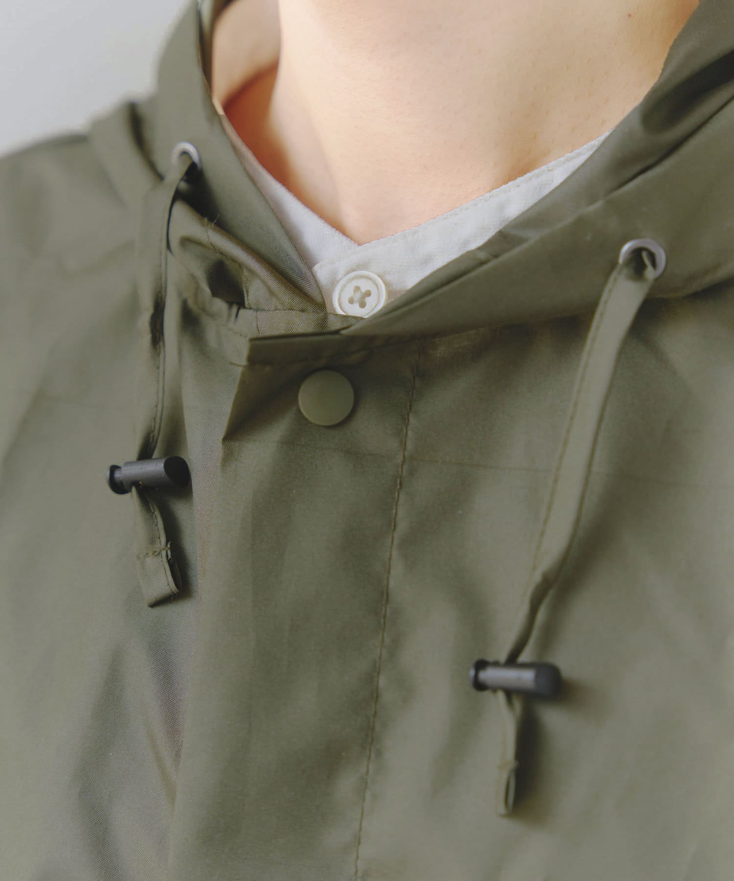 ●激しい雨での着用の際には、生地や縫い目などから雨水がしみ込む場合もありますので、雨傘との併用をおすすめします。