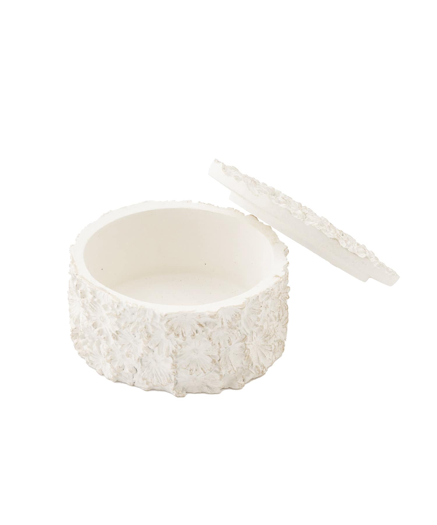 ●細やかなフラワーデザインが上品な華やかさのある小物入れ。