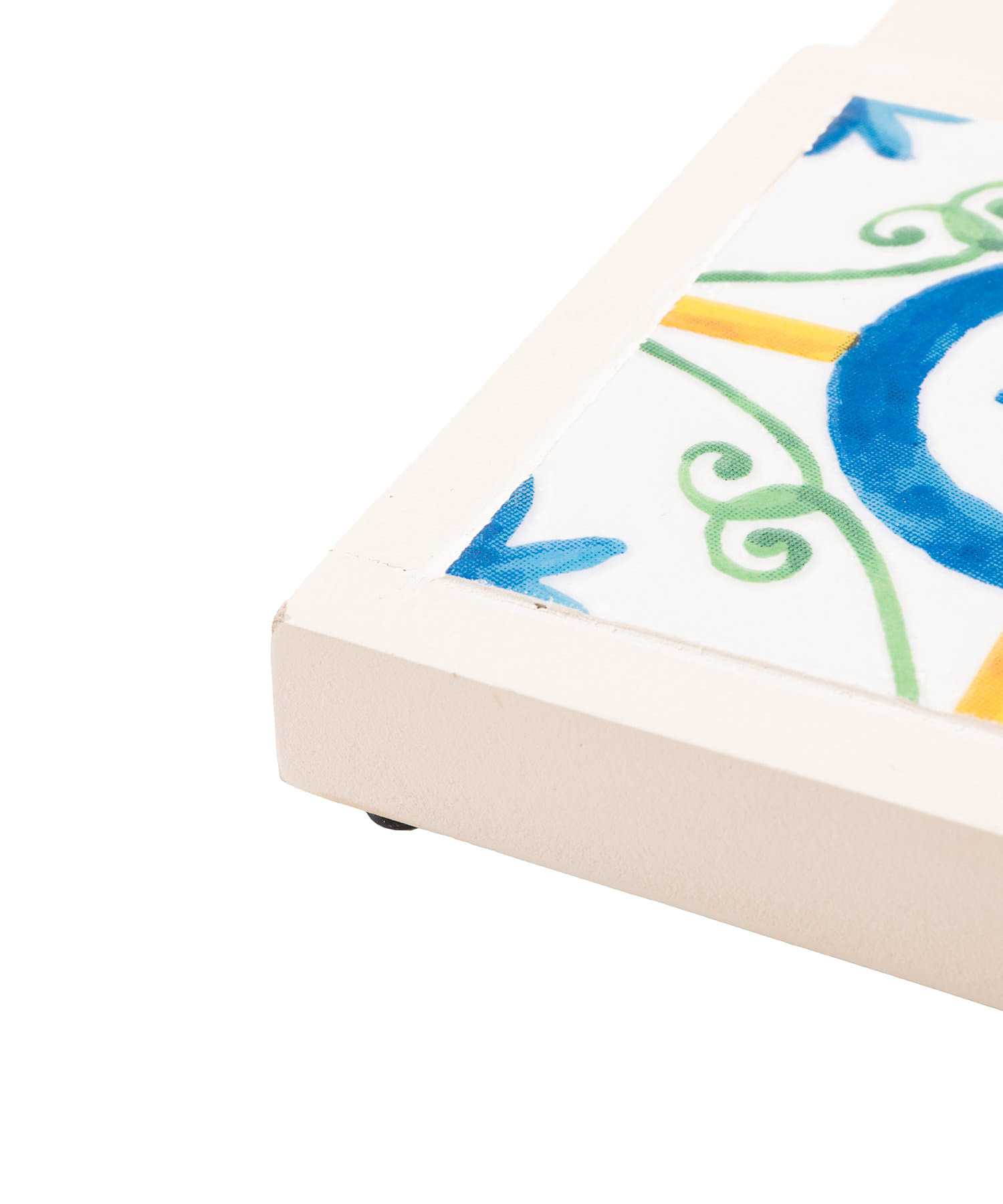 ●タイルの鮮やかな色合いと絵柄のハンドメイド感が魅力的なデザインです。