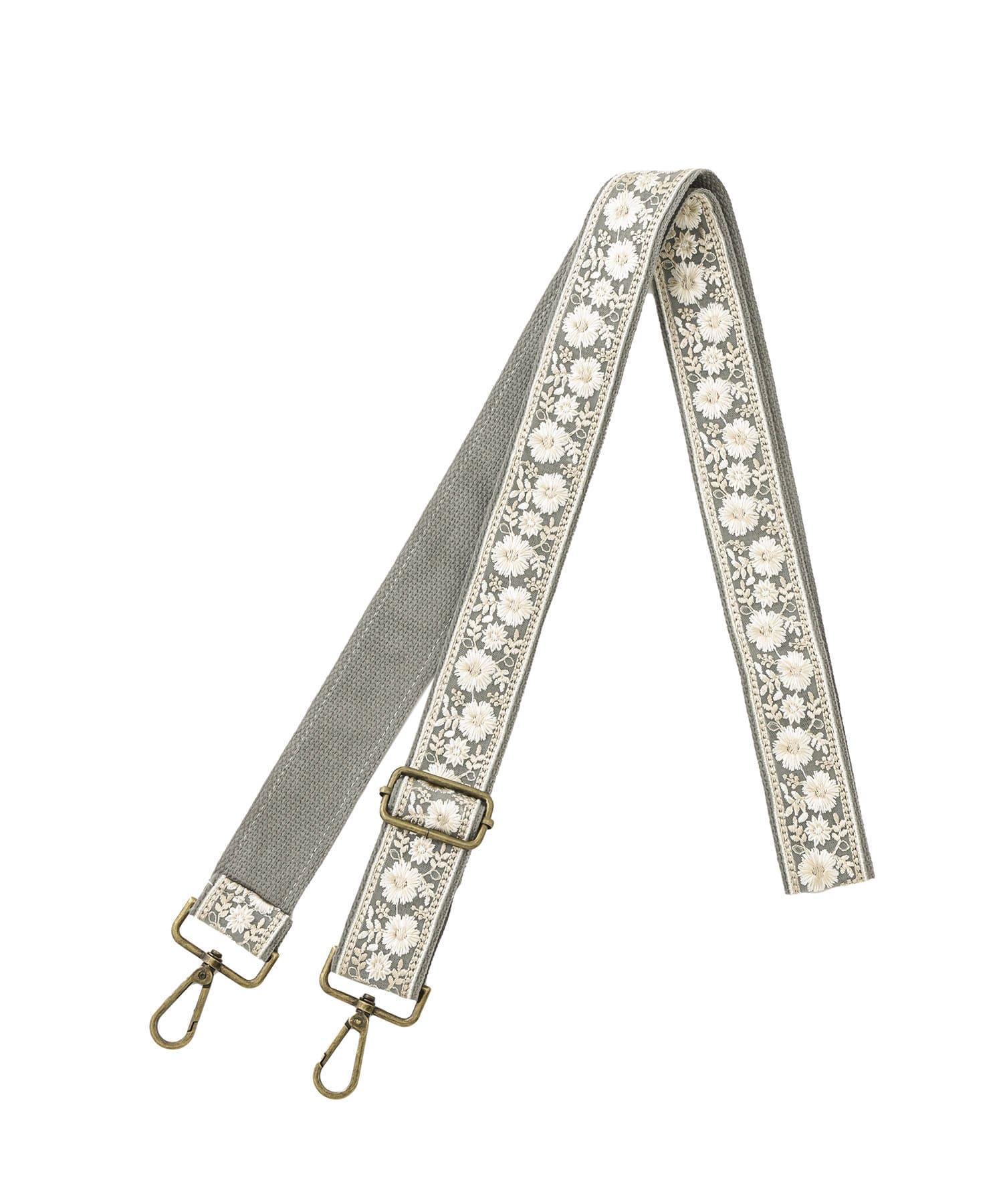 ●繊細な刺繍のリボンを使用したショルダーストラップ。