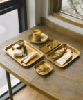●アンティークゴールドのカラーで仕上げられたステンレス製の雑貨トレイ。