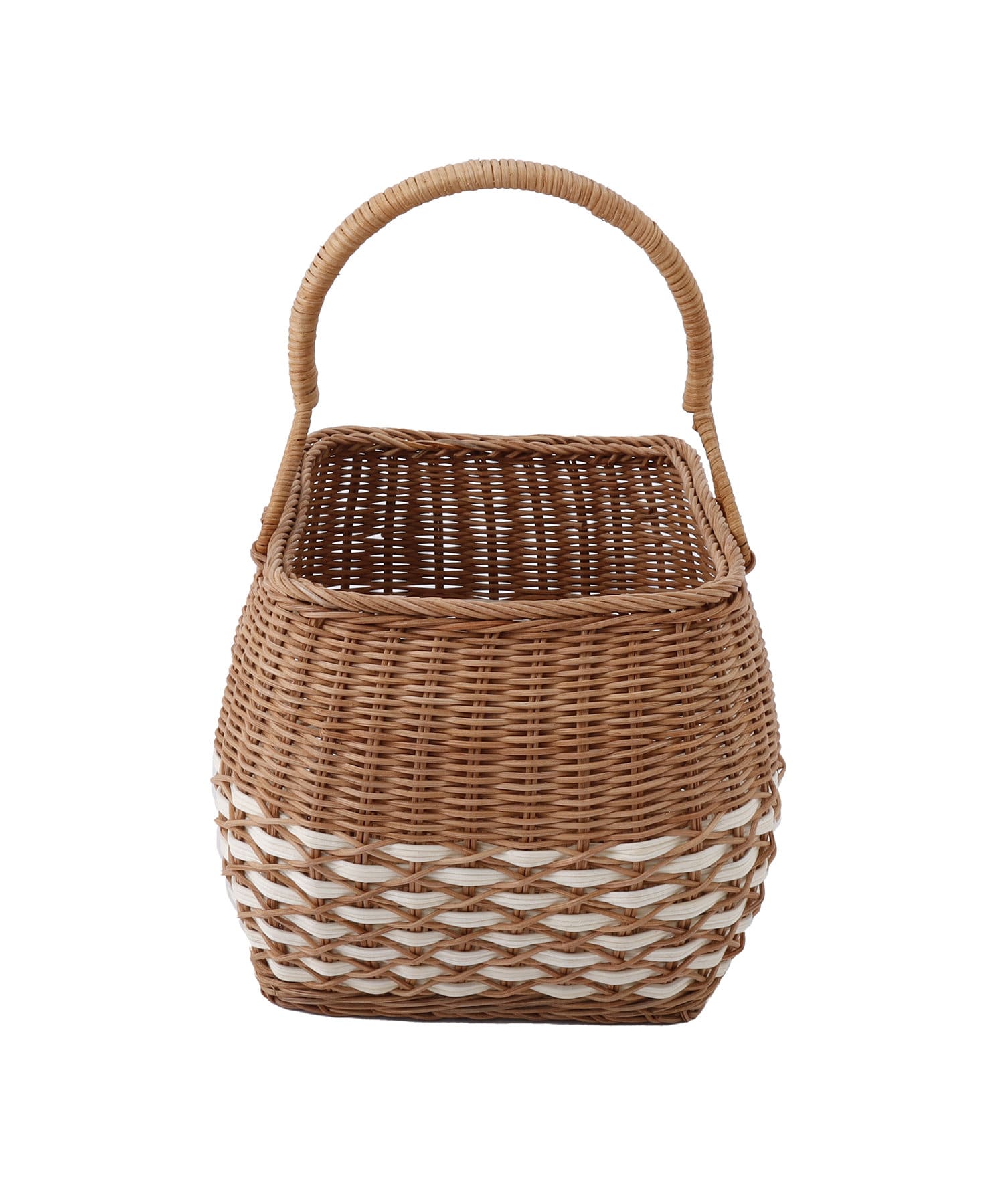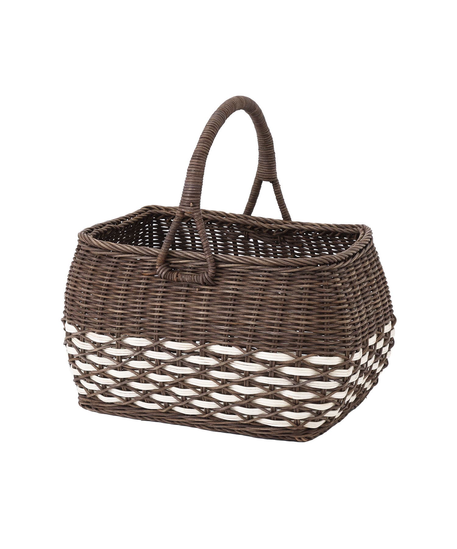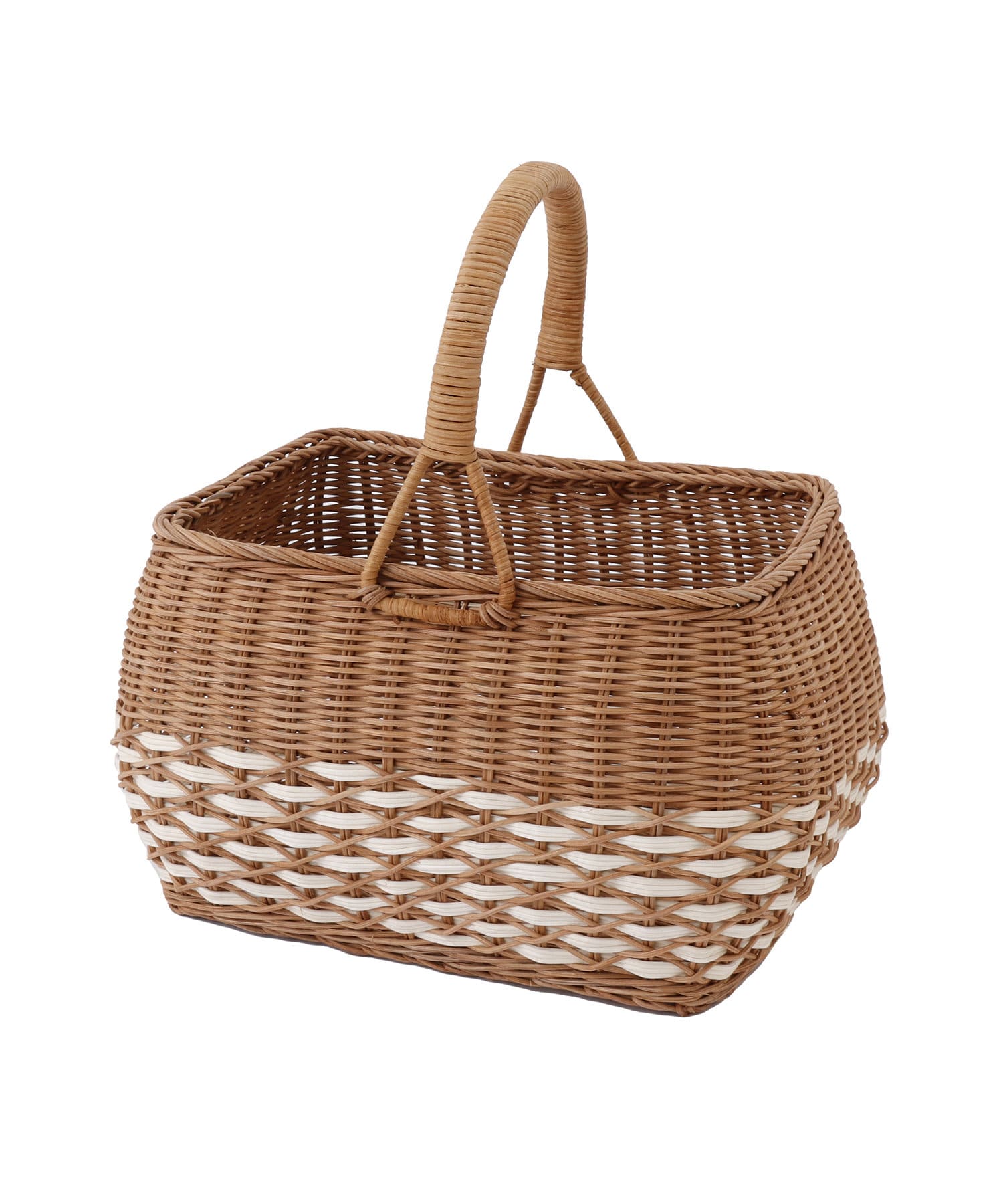 ラタンワンハンドルデザインバスケット:L/浪漫インテリア