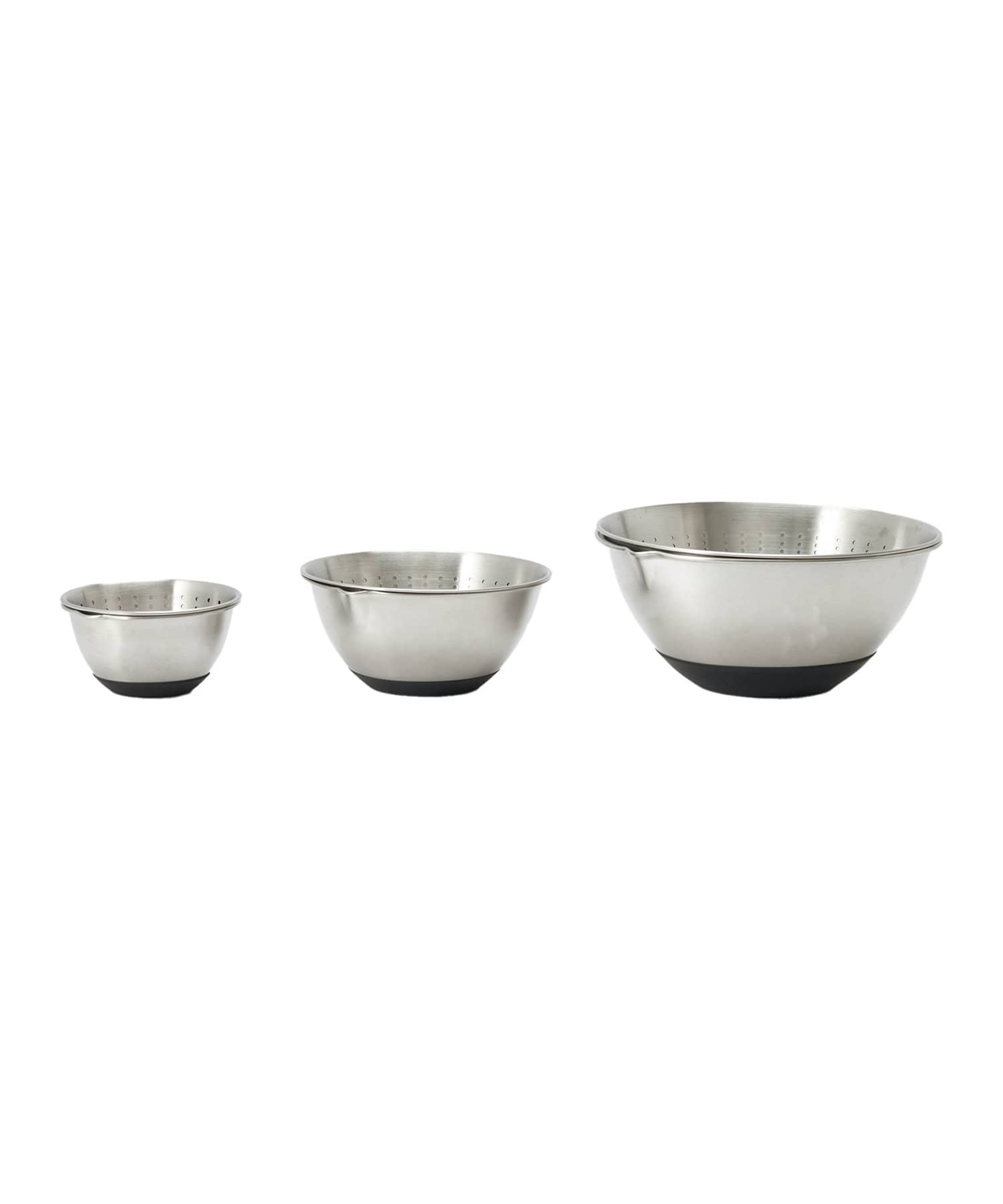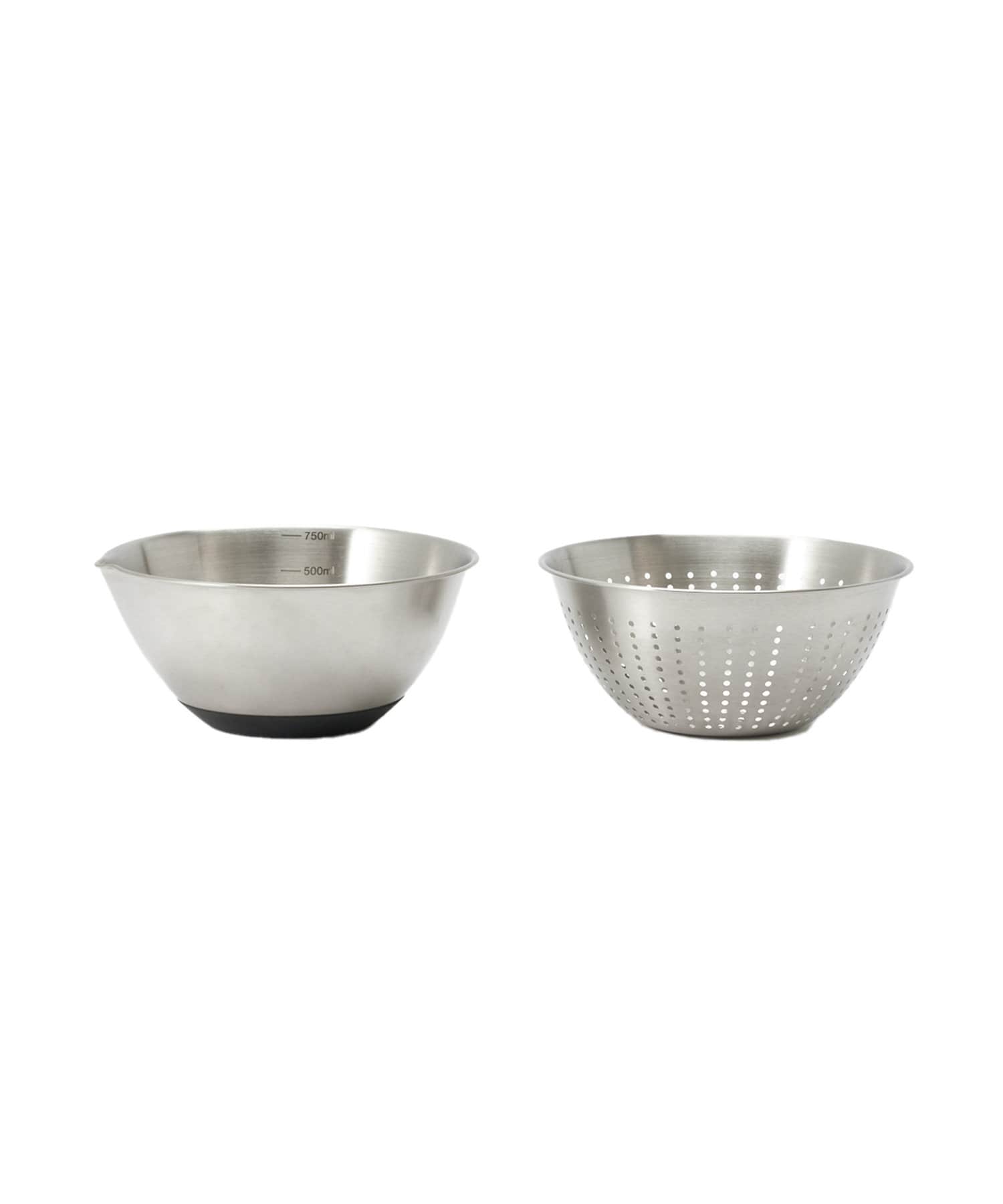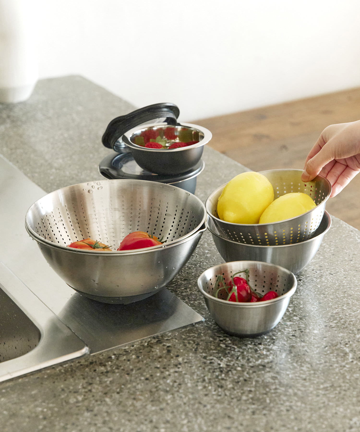 ●野菜の下処理やソース作りなど、調理中に役立つザルとボウルのセット。