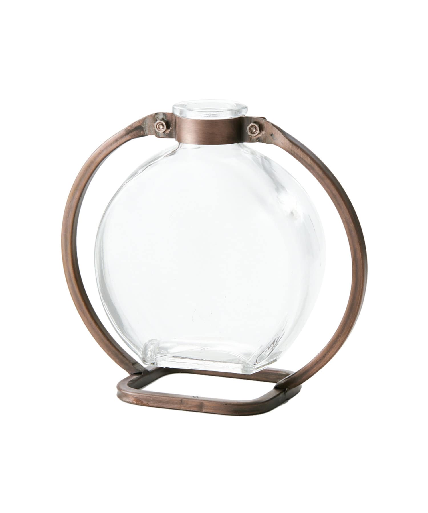 ●アンティークゴールドとガラスの瓶を組み合わせたフラワーベースです。