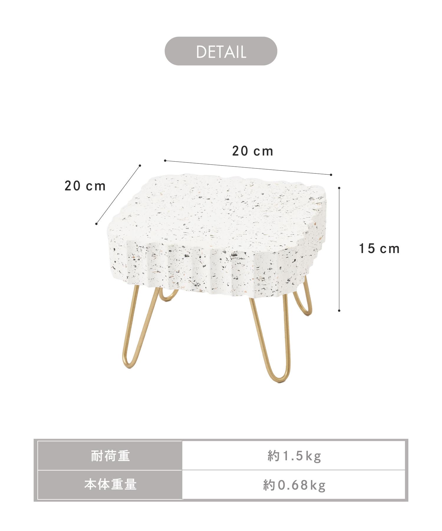 ●テラゾー柄とゴールドの脚が相性抜群なミニスタンド。