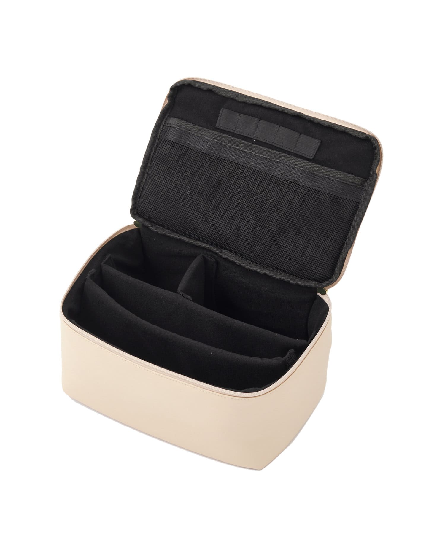 ●中の仕切りは、面ファスナーで着脱可能です。収納したいもののサイズに応じて、自由に動かすことができます。