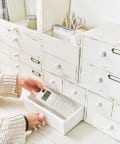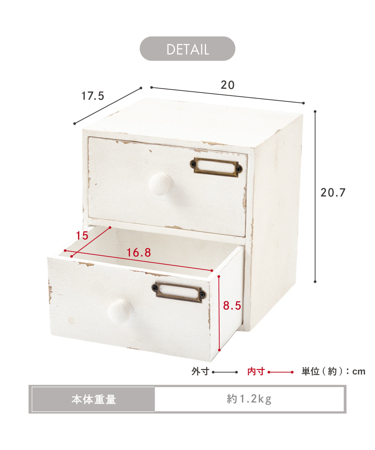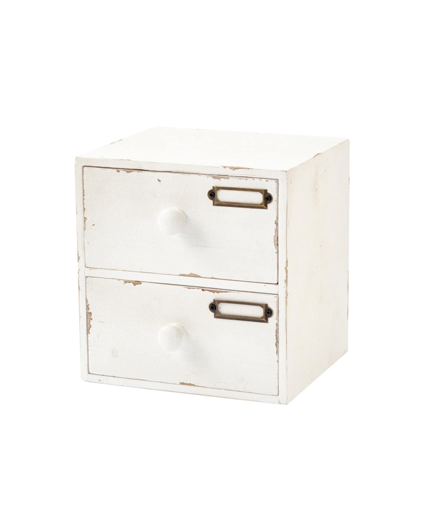 ●ホワイトシャビーなデザインが可愛い2段の引き出しボックス。