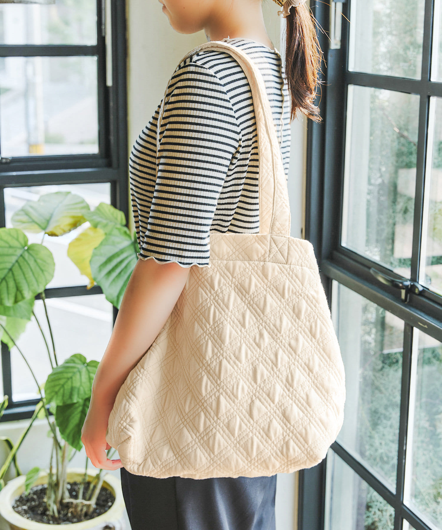 ●ふわっと優しい手触りのキルティング素材を使用したトートバッグ。