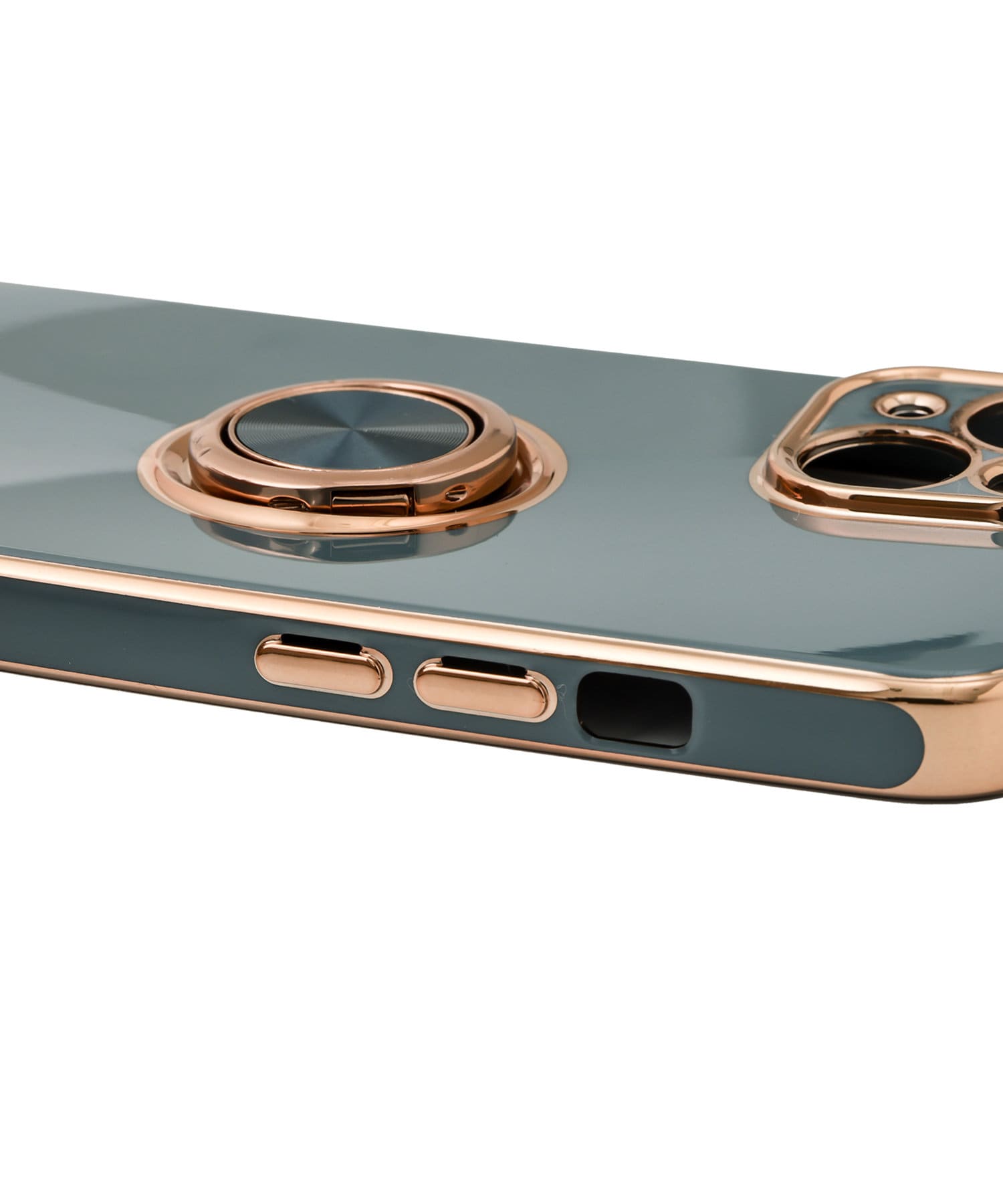 ●ゴールドの縁取りが大人っぽい、リング付きのスマホケース。