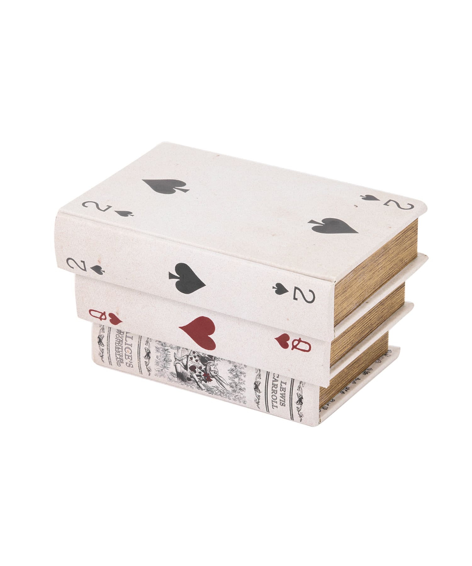 ●不思議の国のアリスの表紙と、ハートのクイーン、スペードのデュースのデザインを組み合わせた本型のドロワーボックス。