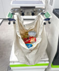 ●持ち手は引き出すタイプなので、買い物かごにセットしているときも引っ掛かったり垂れ下がりません。