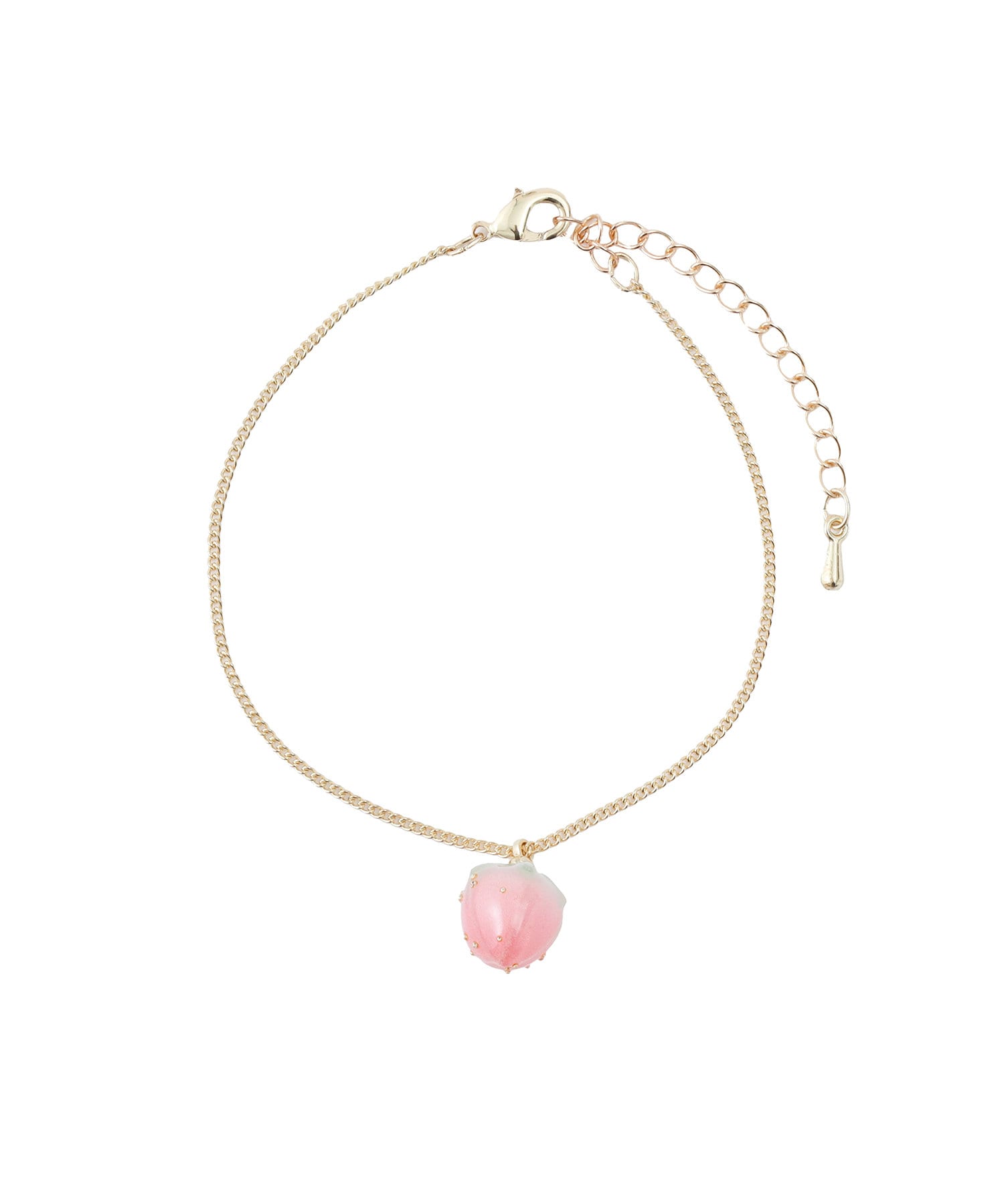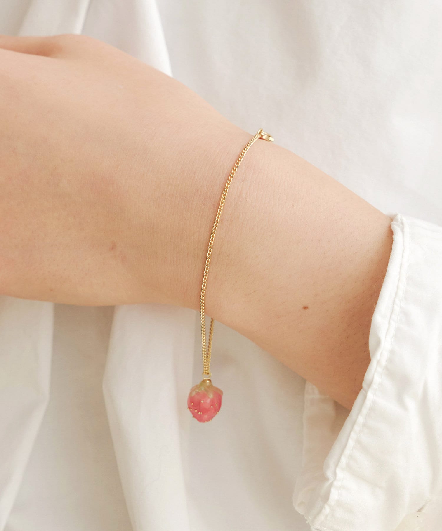 ●淡いカラーが主張しすぎず、さりげない可愛いさのあるいちごのブレスレット。