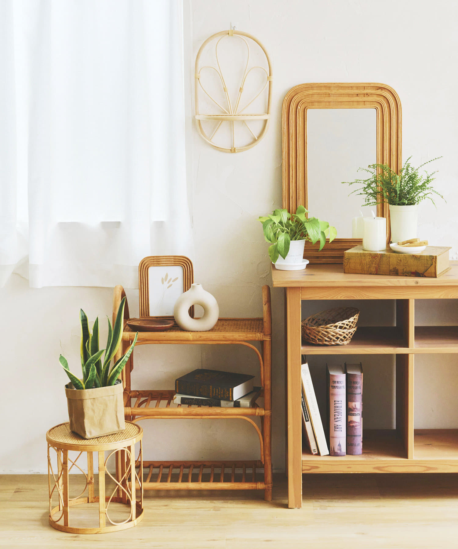 ●ラタンのラインが特徴的で、シンプルながらも存在感のあるデザインです。