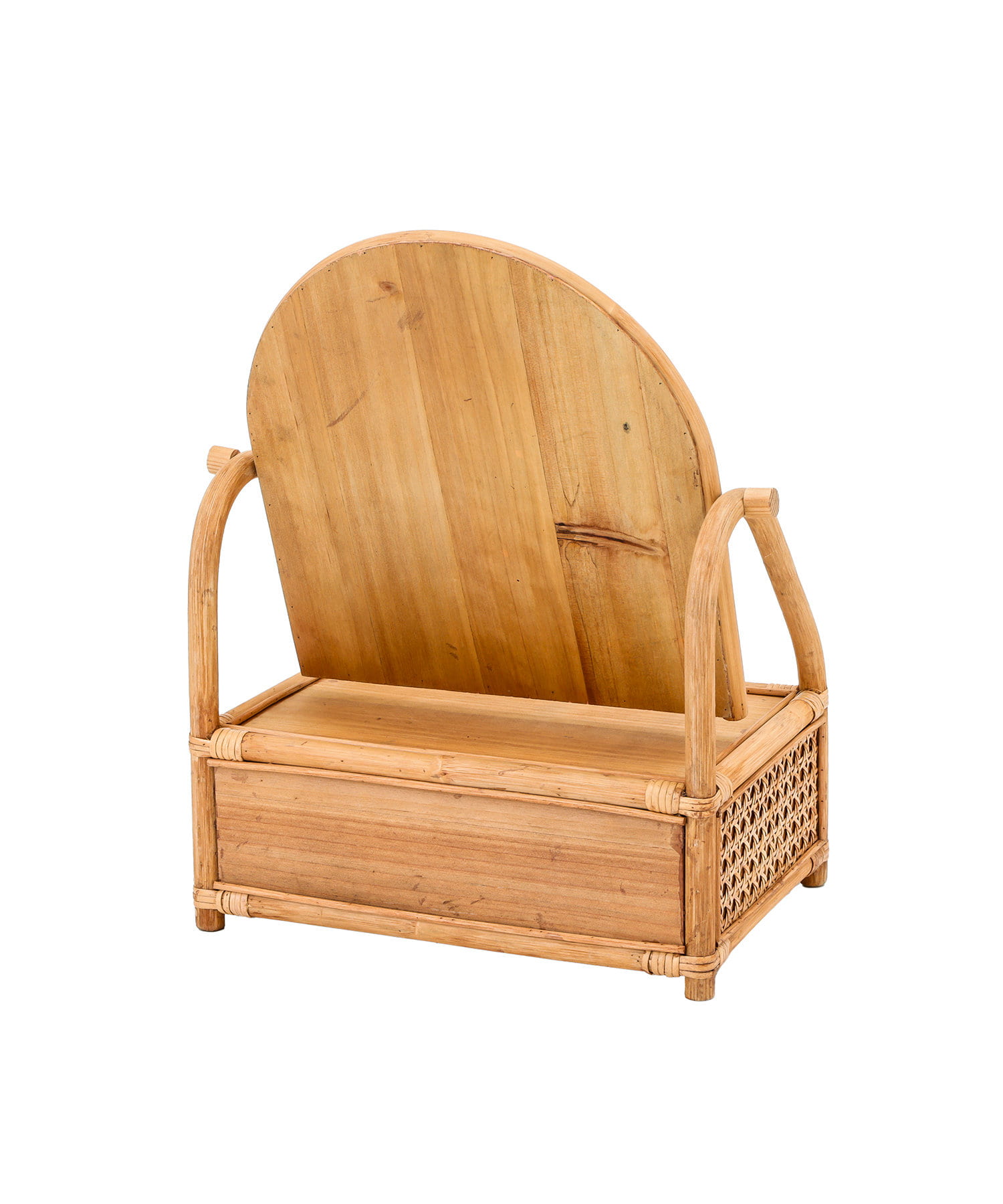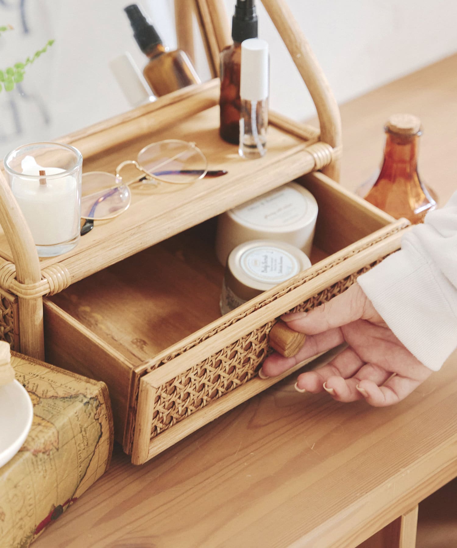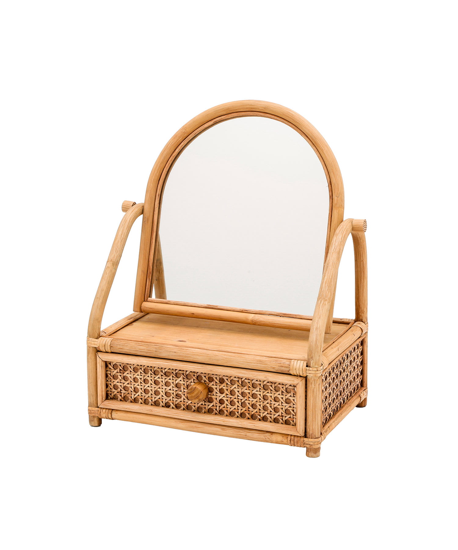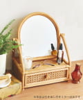 ●軽くて丈夫な天然素材、ラタンを使用した引き出し付きミラー。