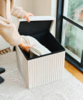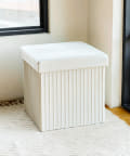 ●ベロア素材とプリーツを組み合わせたオシャレなデザインの収納スツール。