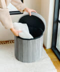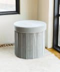 ●ベロア素材とプリーツを組み合わせたオシャレなデザインの収納スツール。