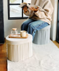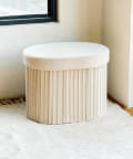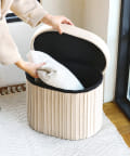 ●ベロア素材とプリーツを組み合わせたオシャレなデザインの収納スツール。