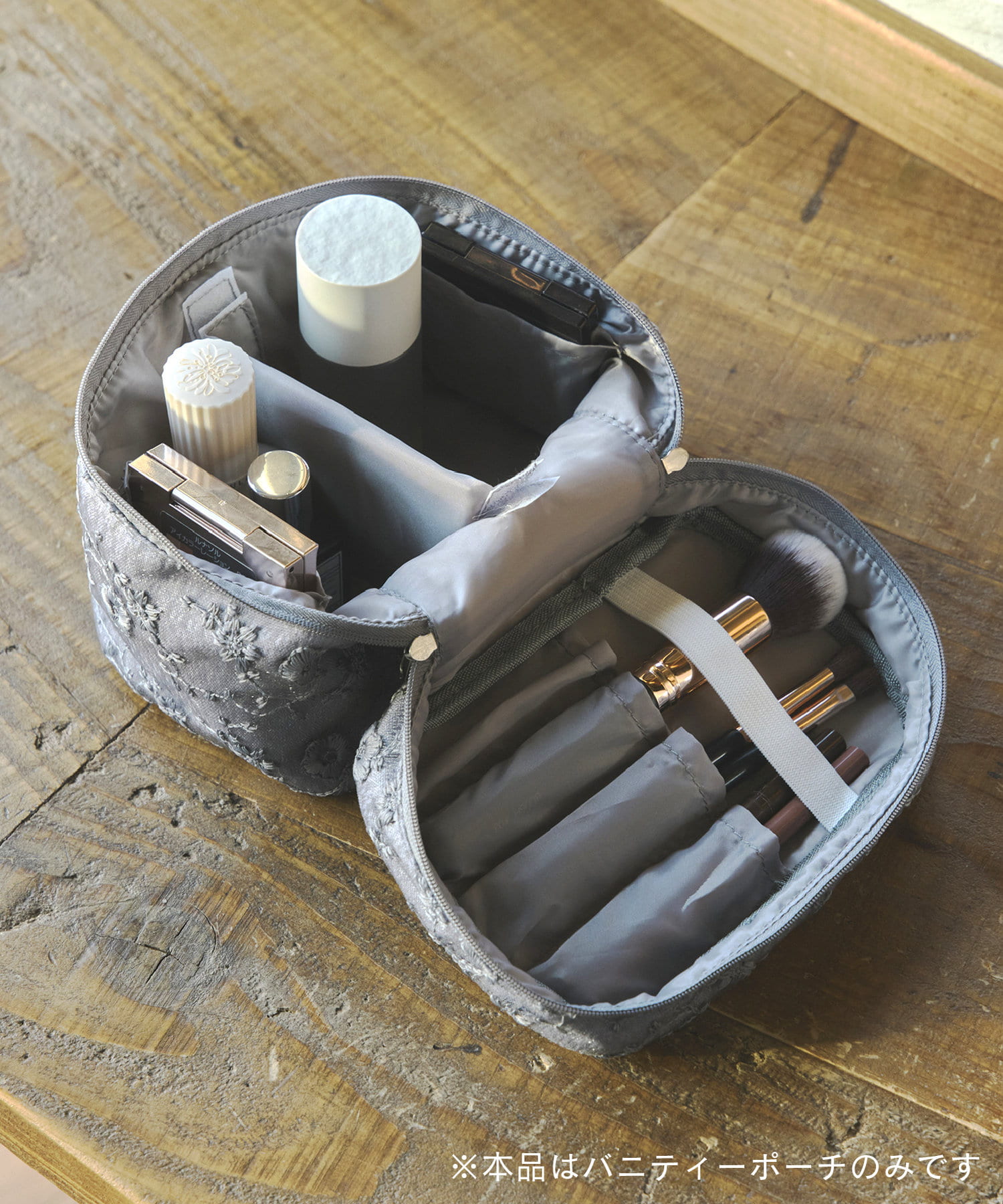 ●繊細なフラワーの刺繍柄がかわいいバニティーポーチ。
