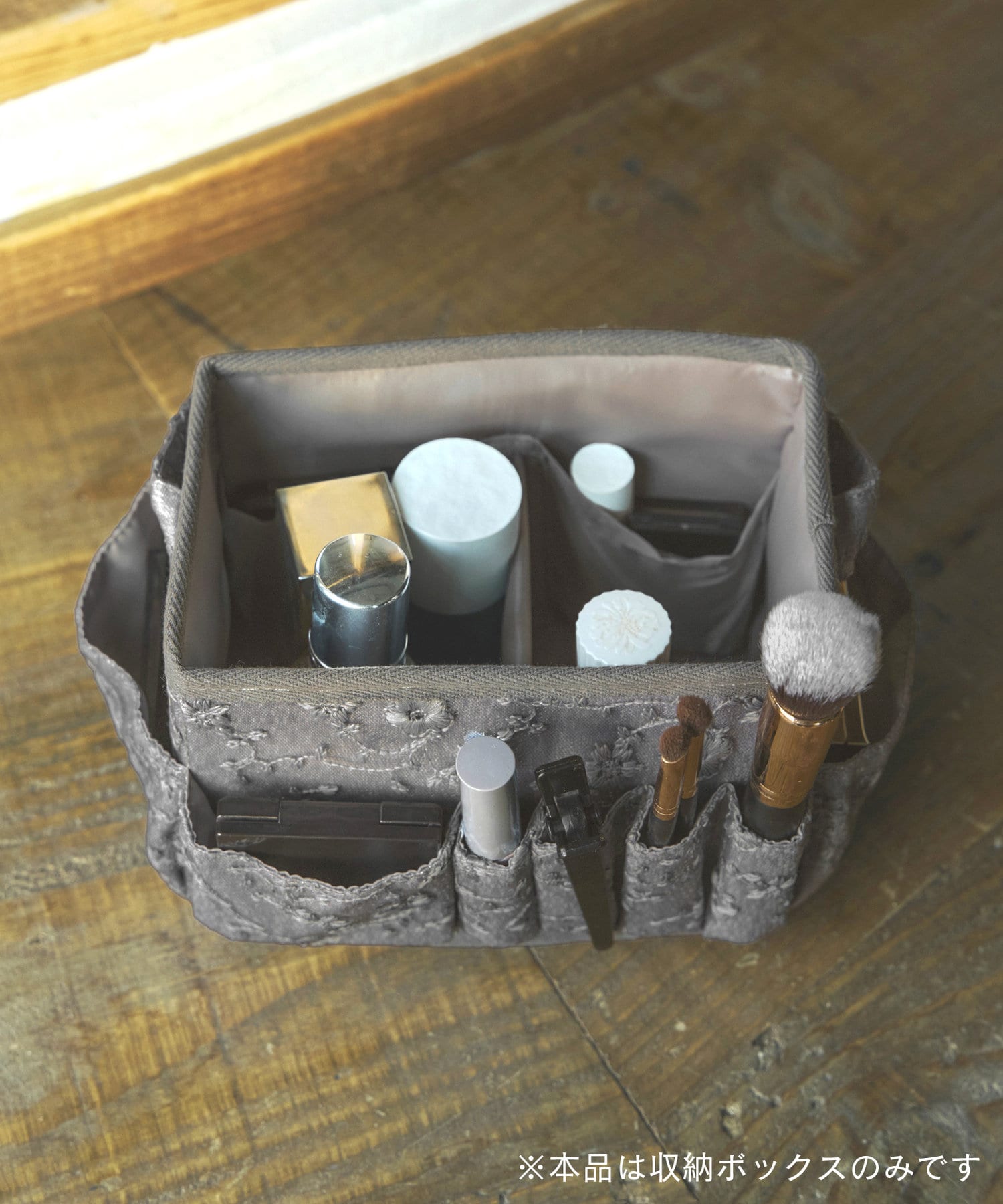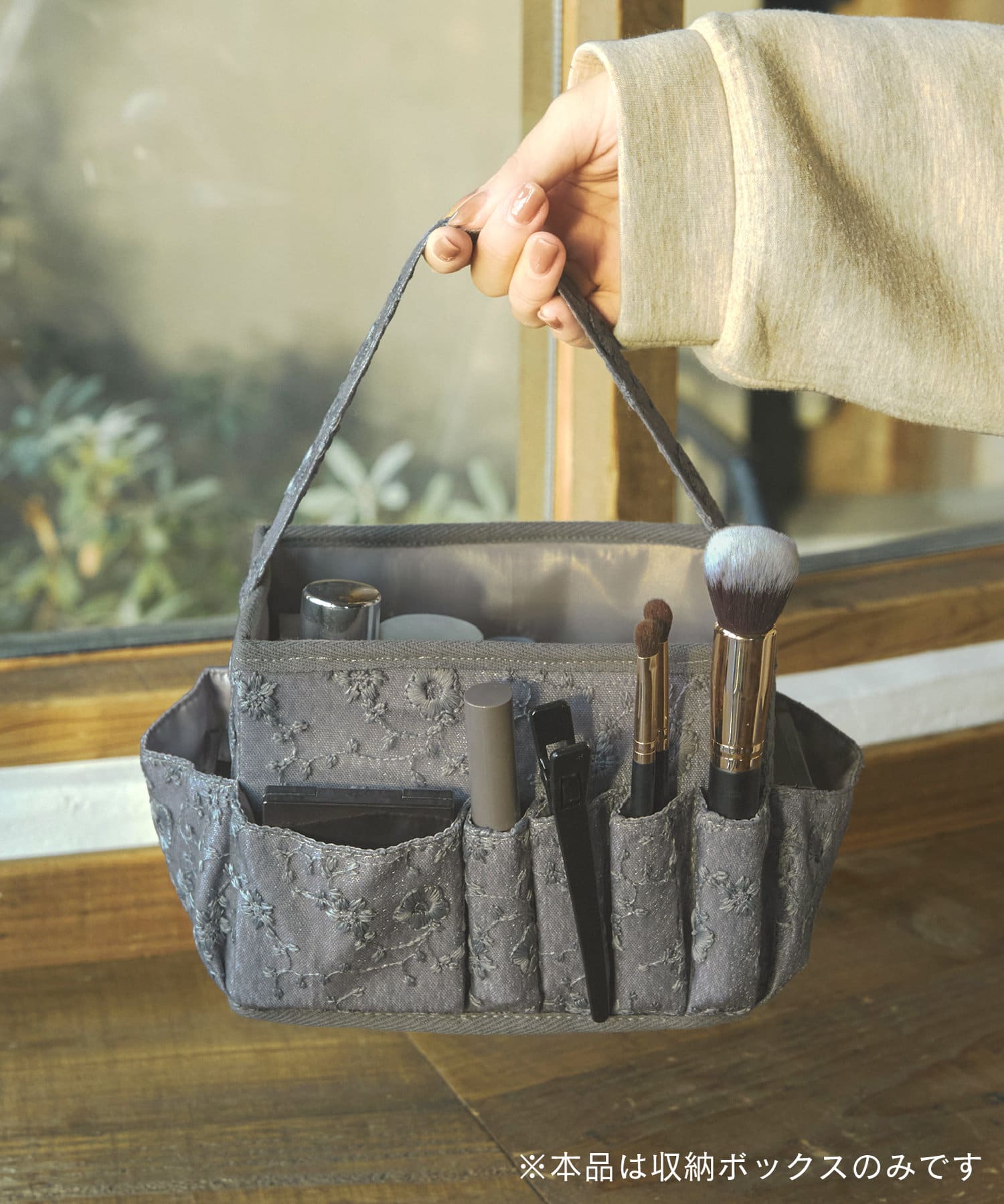●繊細なフラワー刺繍柄のメイク収納ボックス。
