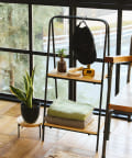 ●クールなアイアンと温かみのある天然木の組み合わせが魅力的なディスプレイスタンド