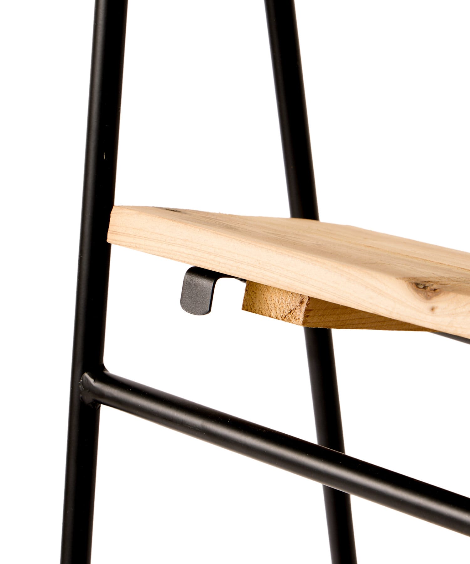 ●クールなアイアンと温かみのある天然木の組み合わせが魅力的な折りたたみシェルフ