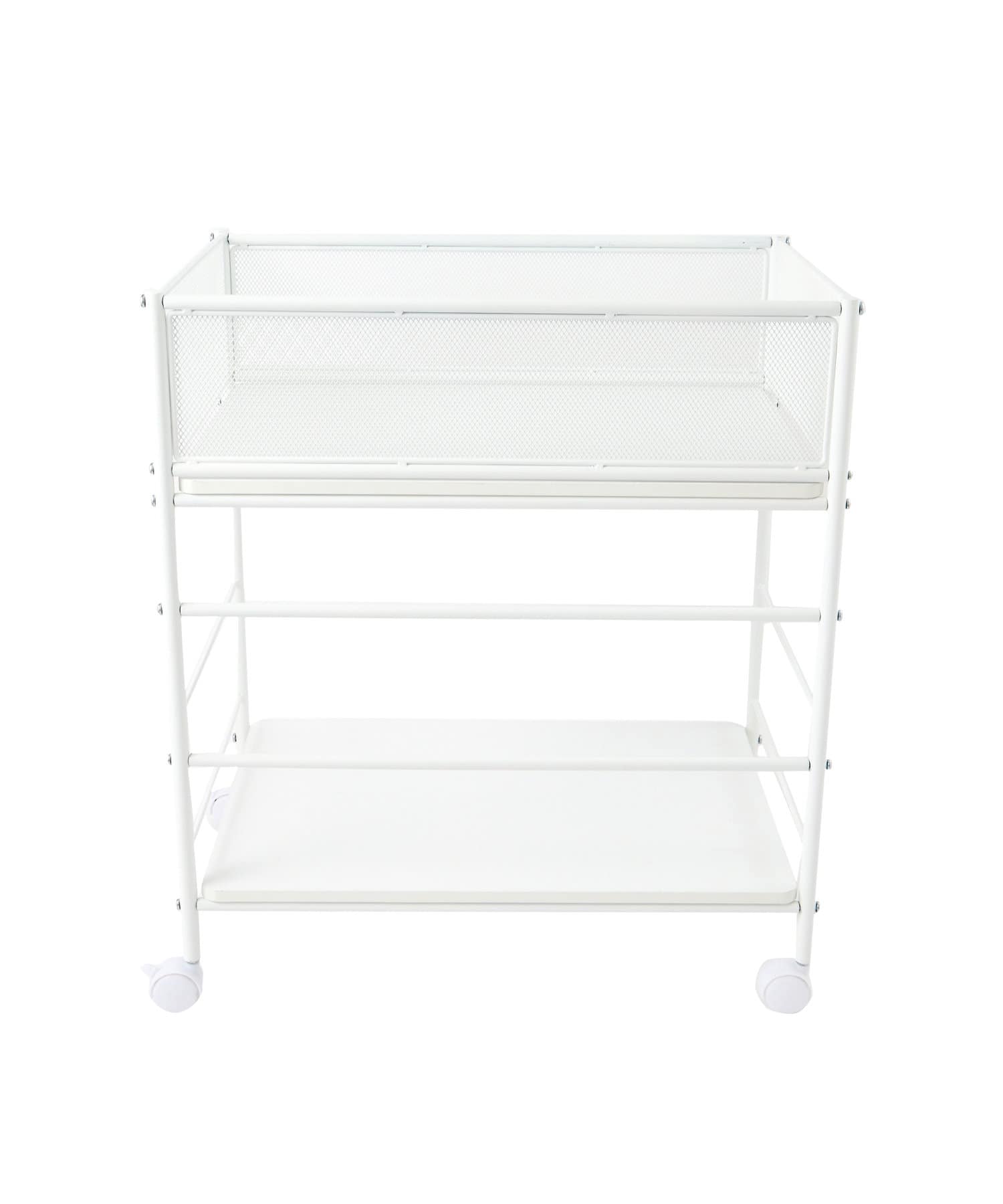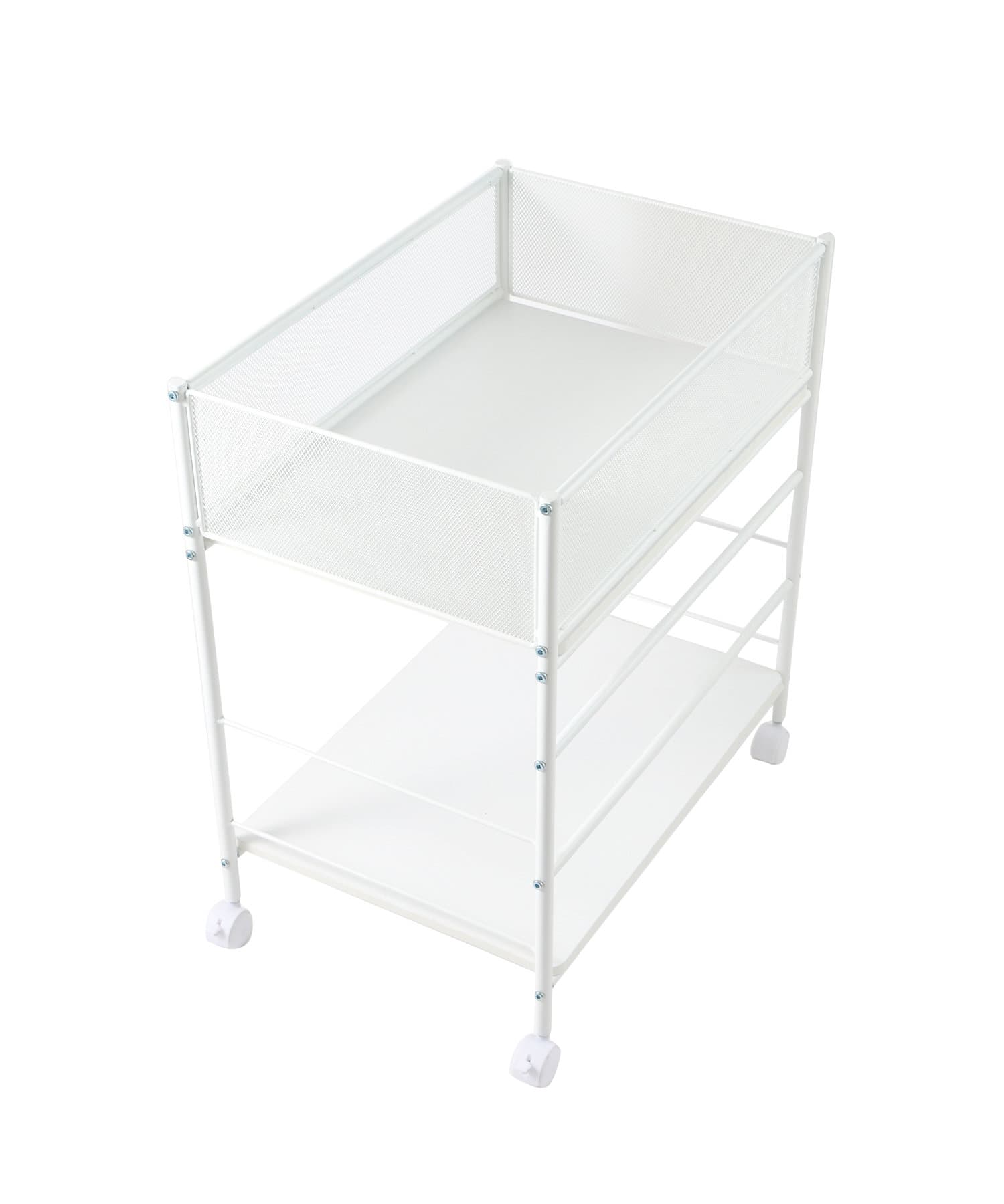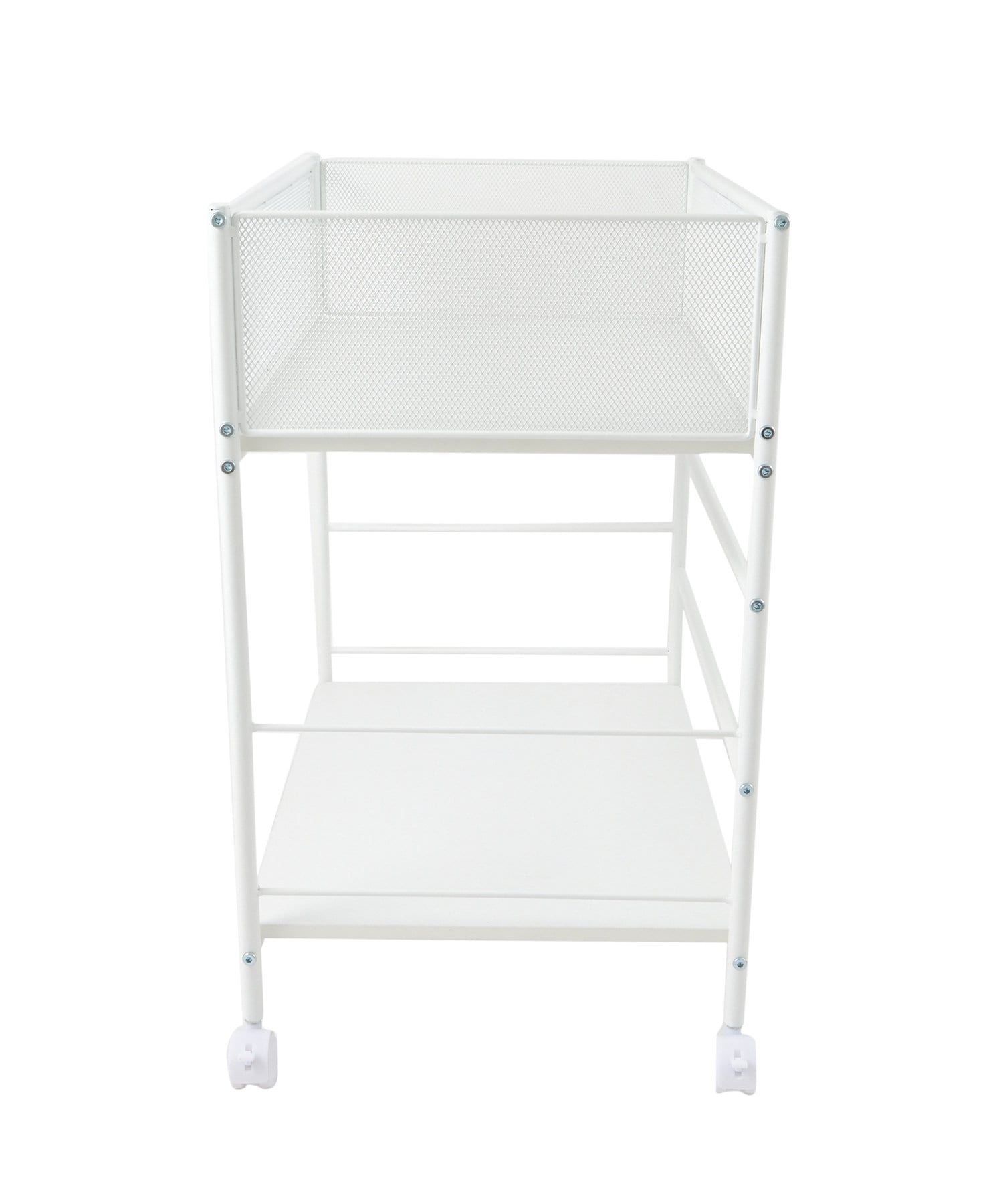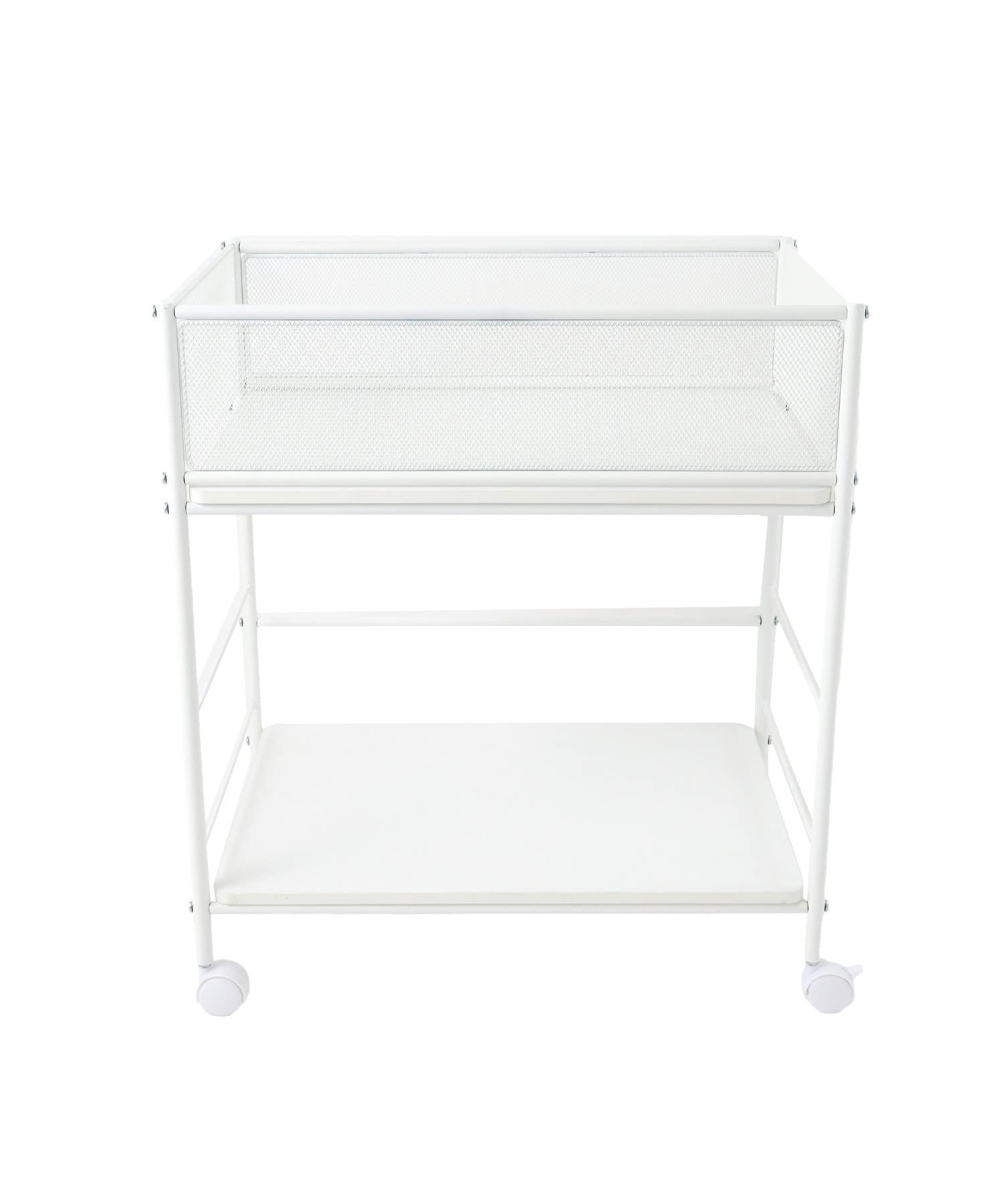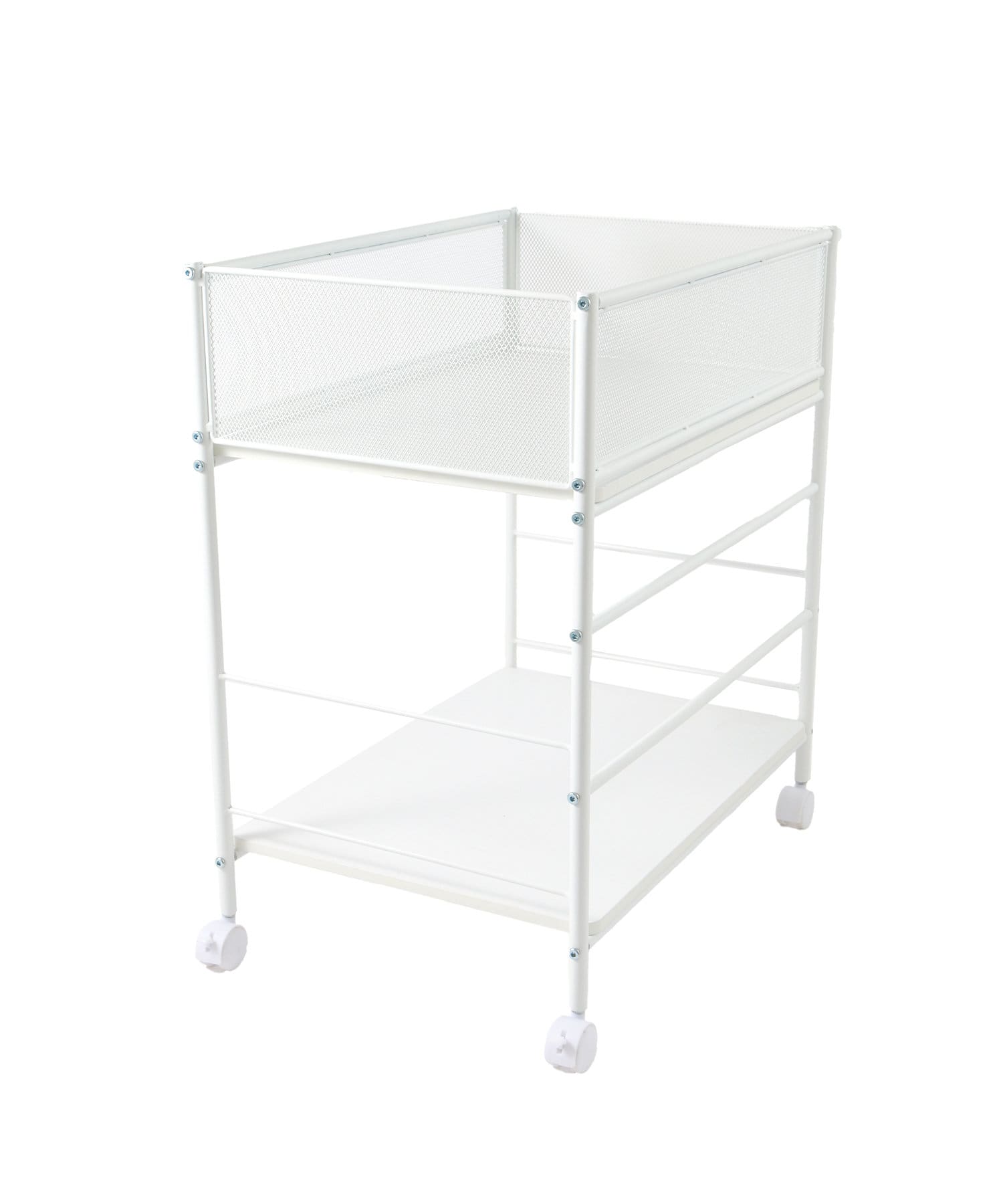 ●スタイリッシュなホワイトのメタルバスケットワゴン。