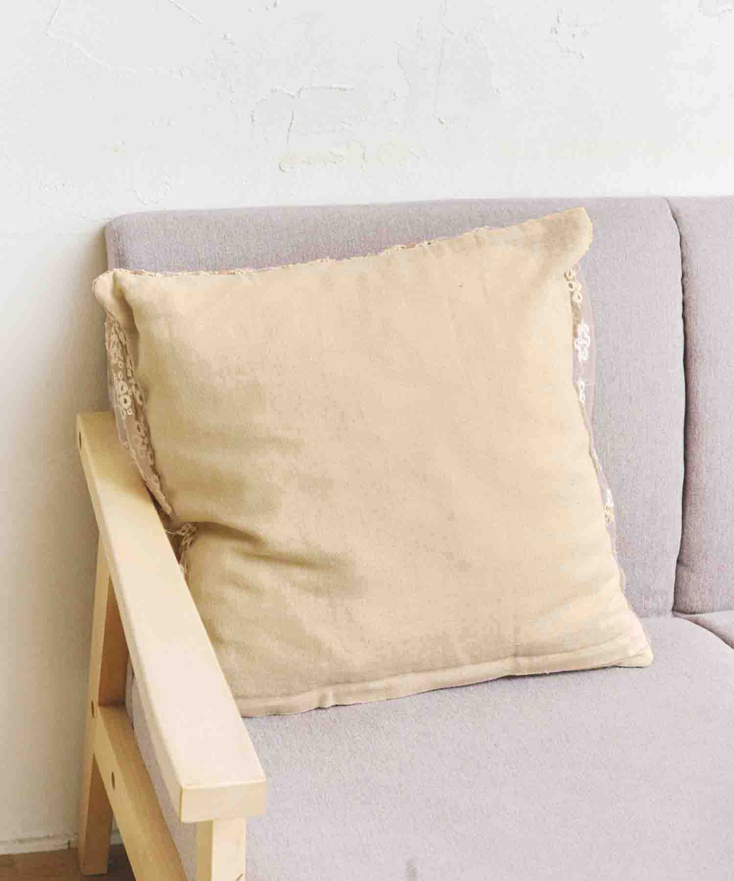 ●チュールレースに繊細なフラワーの刺繍を施したクッションカバー。