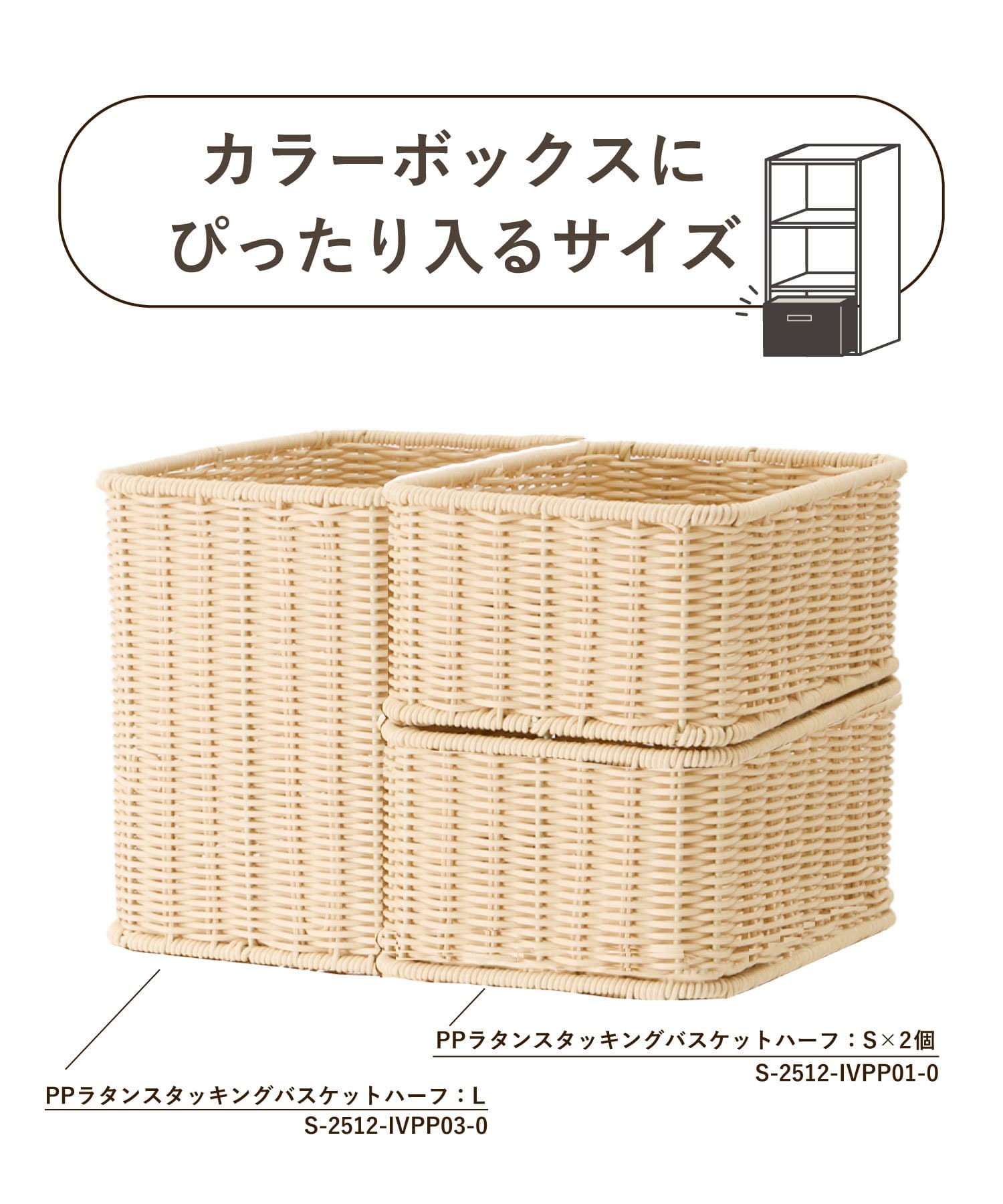 アイテム詳細 品番 S-2512-IVPP03-0 素材 ポリプロピレン、鉄 原産国 中国 サイズ 0 カテゴリ 収納 > バスケット/カゴ タイプ ライフスタイル ギフト ラッピング 可 取り扱い - アイテムサイズ サイズ - 0 約高さ24×幅26×奥行き18cm 耐荷重:約4kg - ショッピングの気になる点はヘルプページをご確認ください