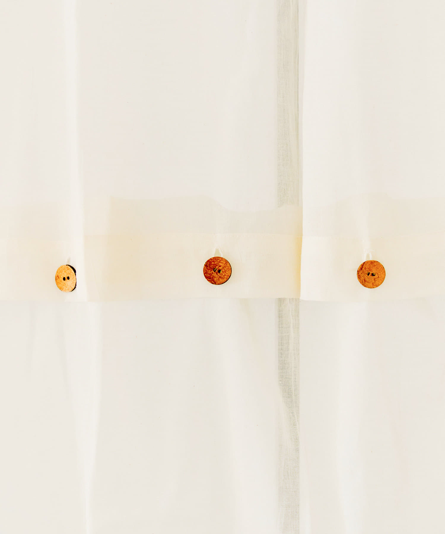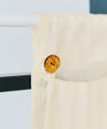 ●ループ部分をボタンに留めて重ねて使用したり、下側のホール部分をボタンに留めて縦に長く使用したりと色々アレンジしてお使いいただけます。