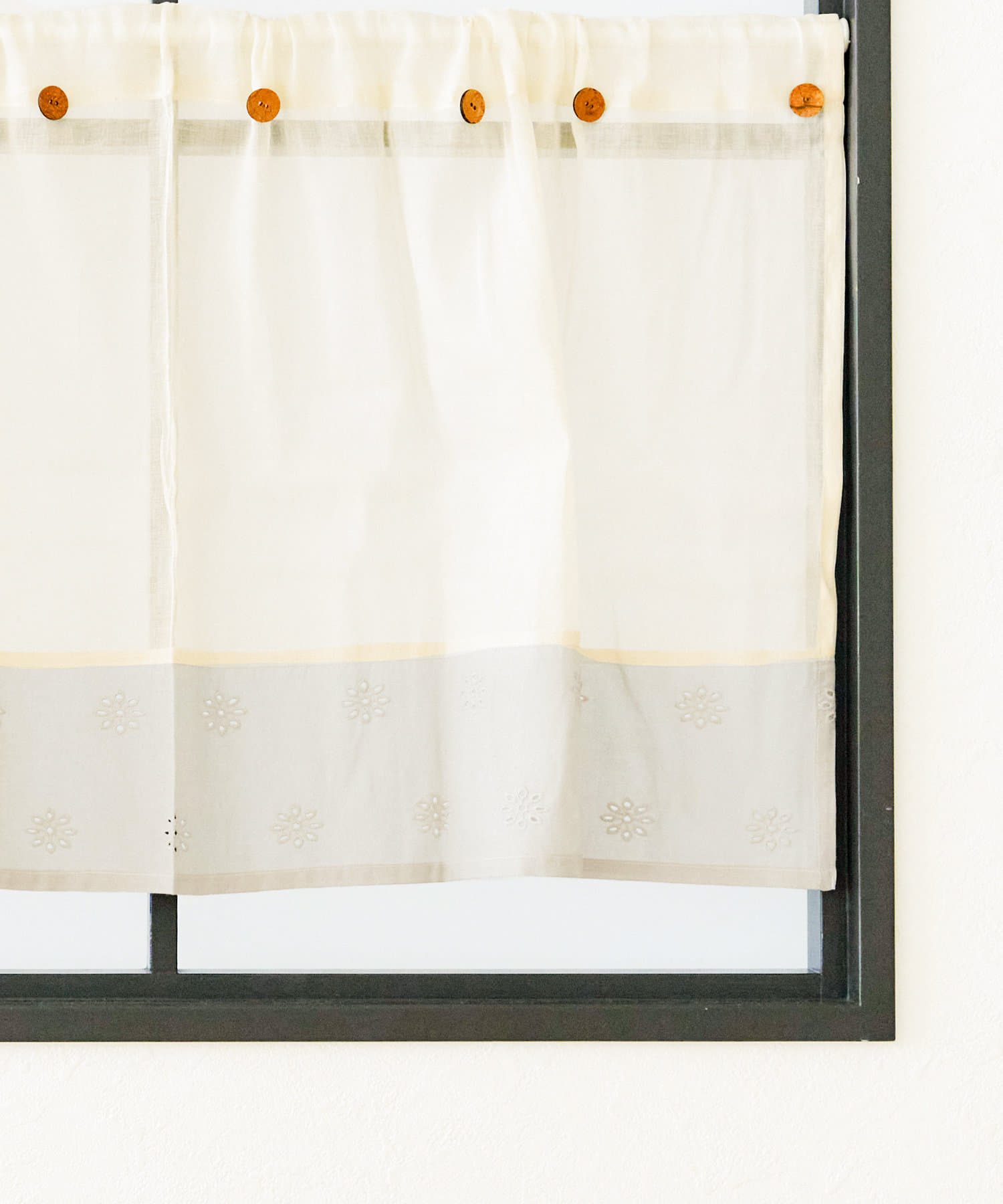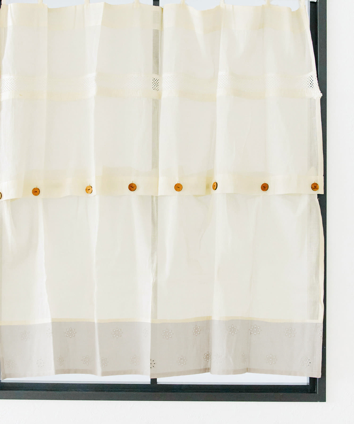 ●レースデザインがかわいいナチュラルなダブルカフェカーテン。