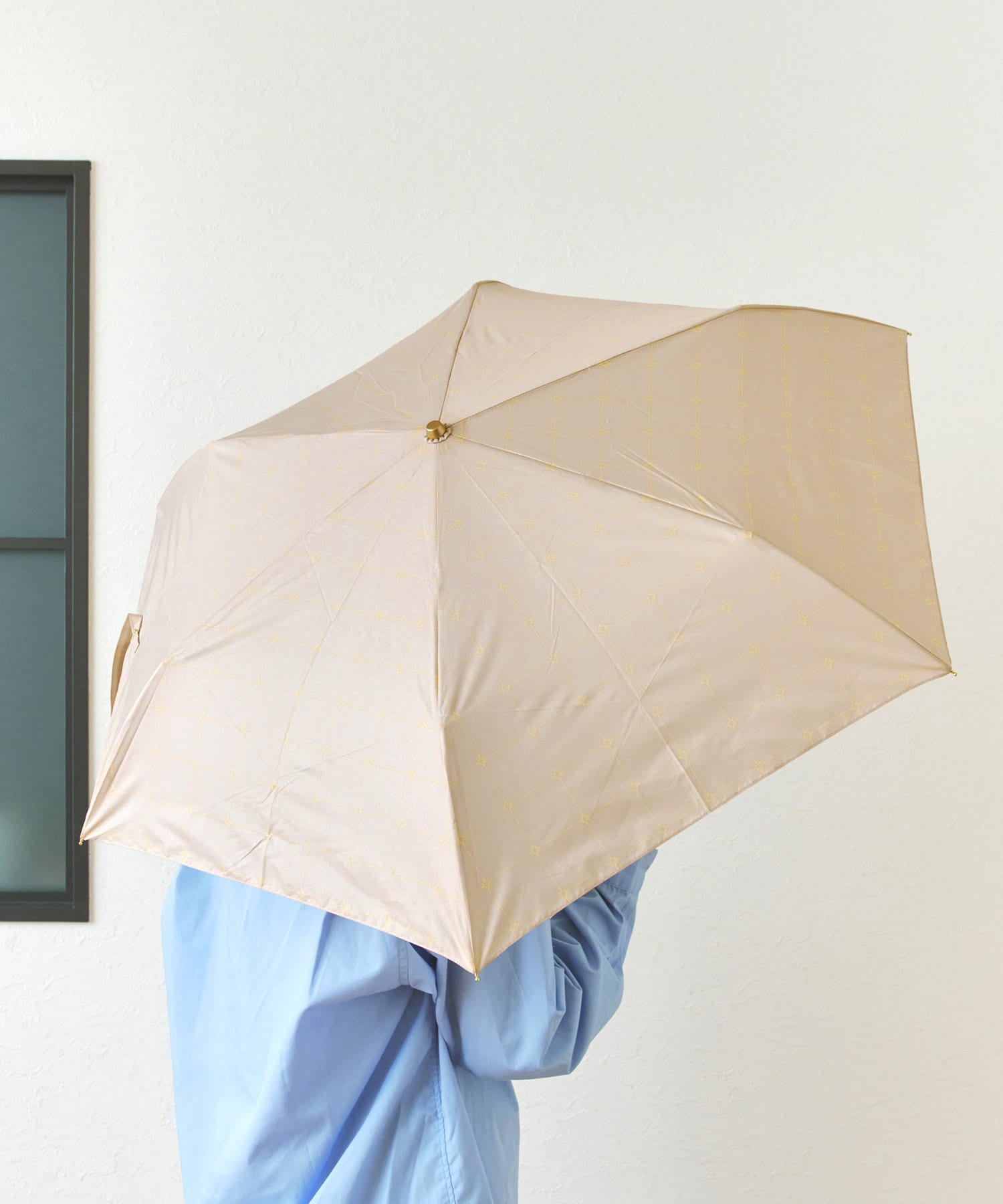 ●ガーデニングのフェンスのような格子柄の折りたたみ雨傘。