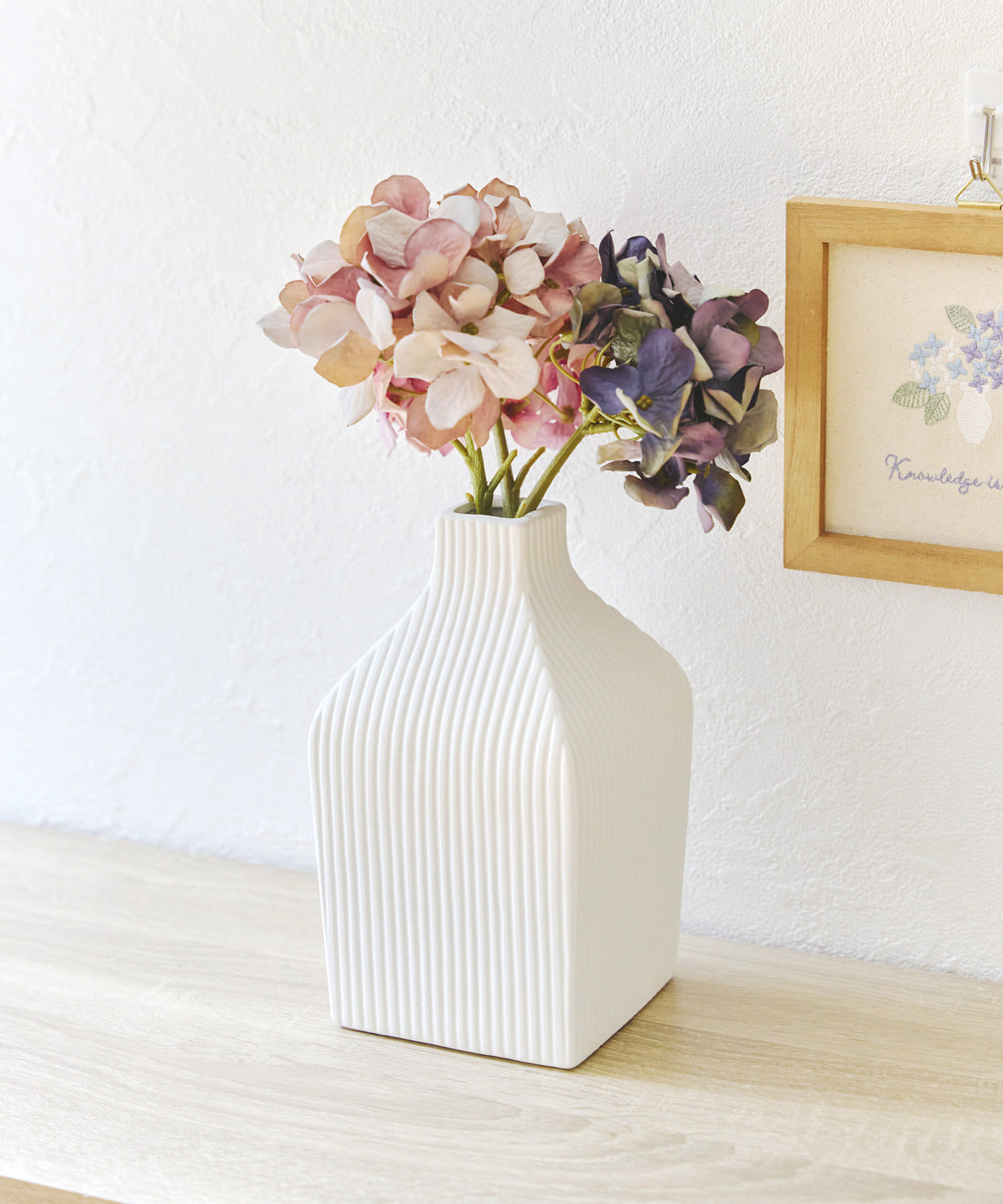 ●マットな質感でエンボスのストライプが入った甘すぎないデザインのフラワーベース。