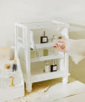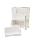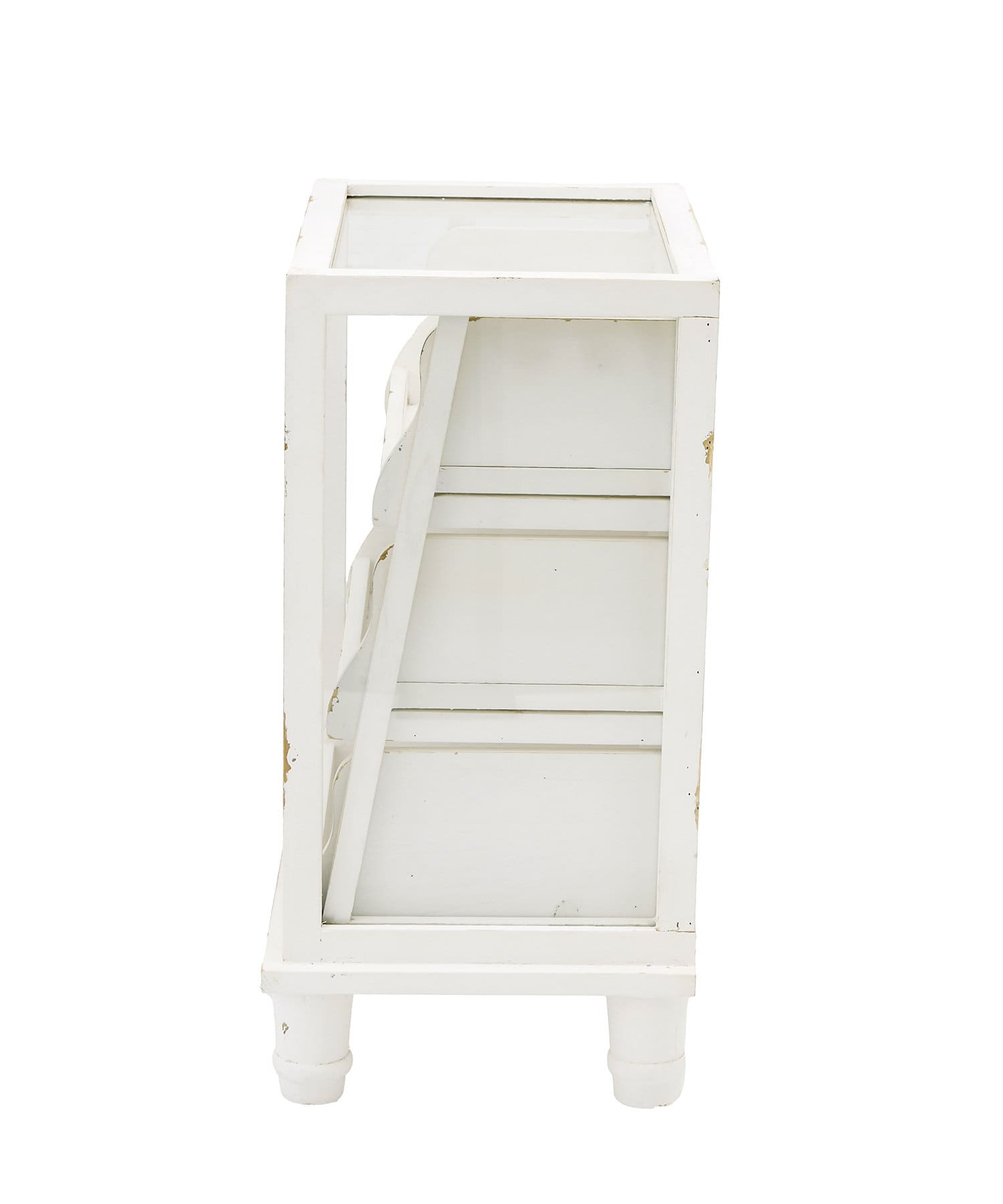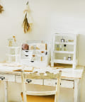 ●お部屋にぬくもりを添える、シャビー感のあるアンティークホワイトの引き出しシェルフ。