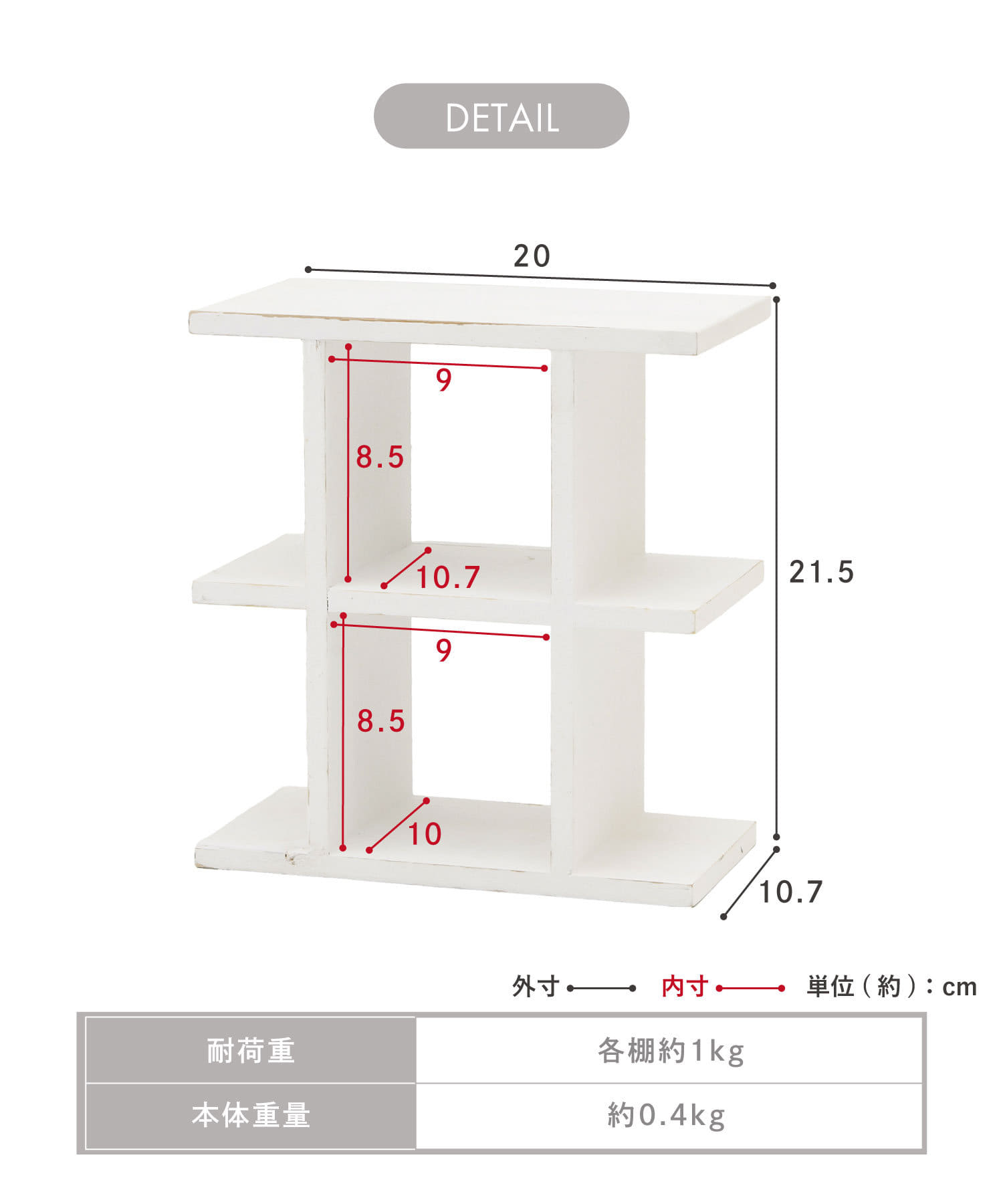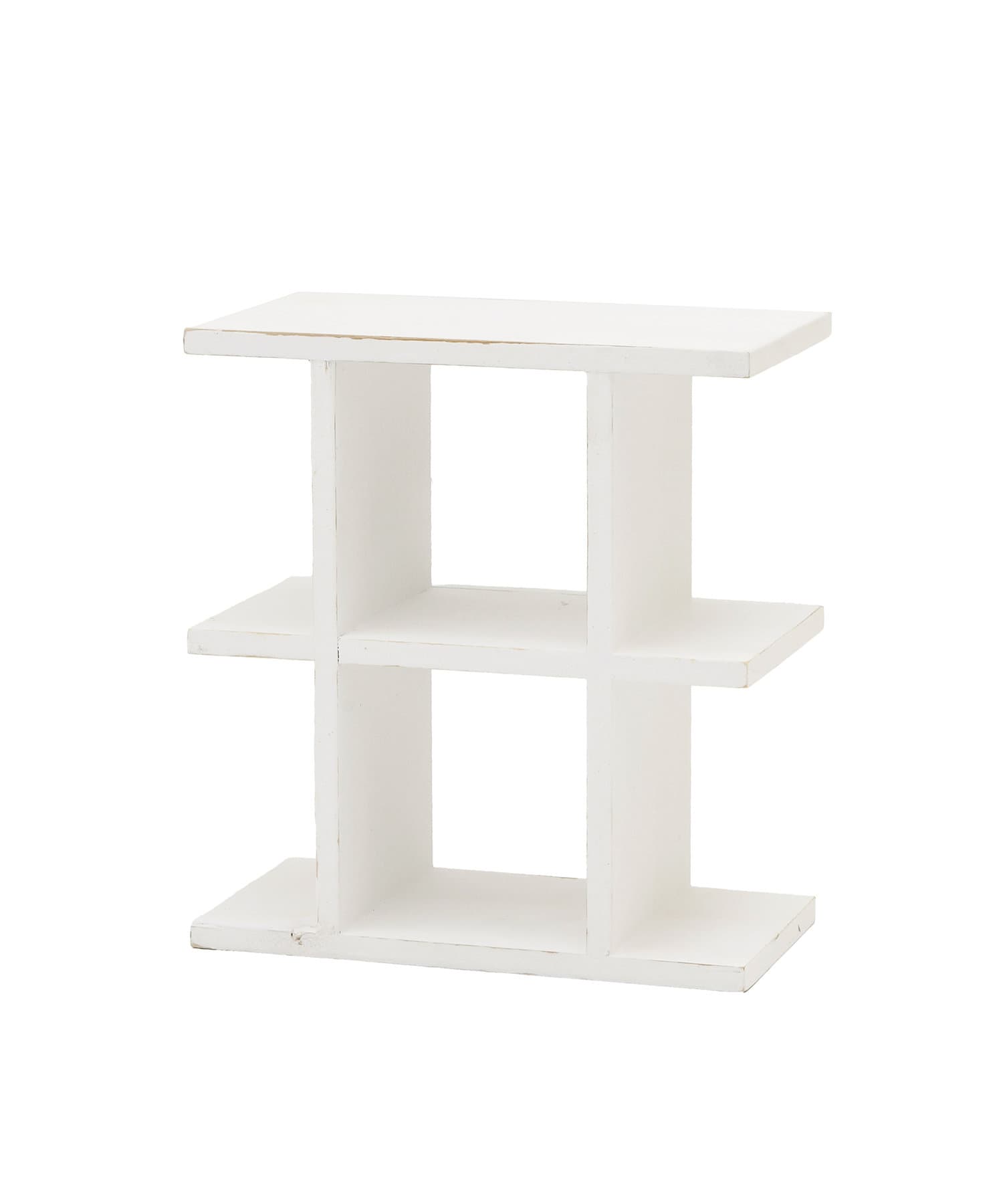 ●お部屋にぬくもりを添える、シャビー感のあるアンティークホワイトのミニシェルフ。