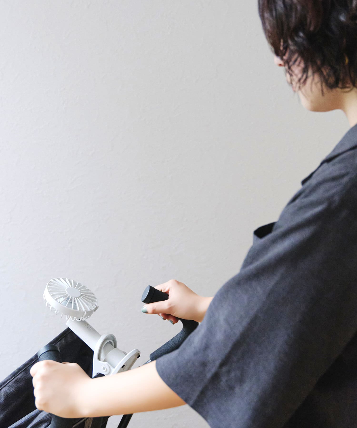 ●クリップスタンド付きなので、ハンディタイプとスタンドタイプの2WAYで使える小型扇風機。