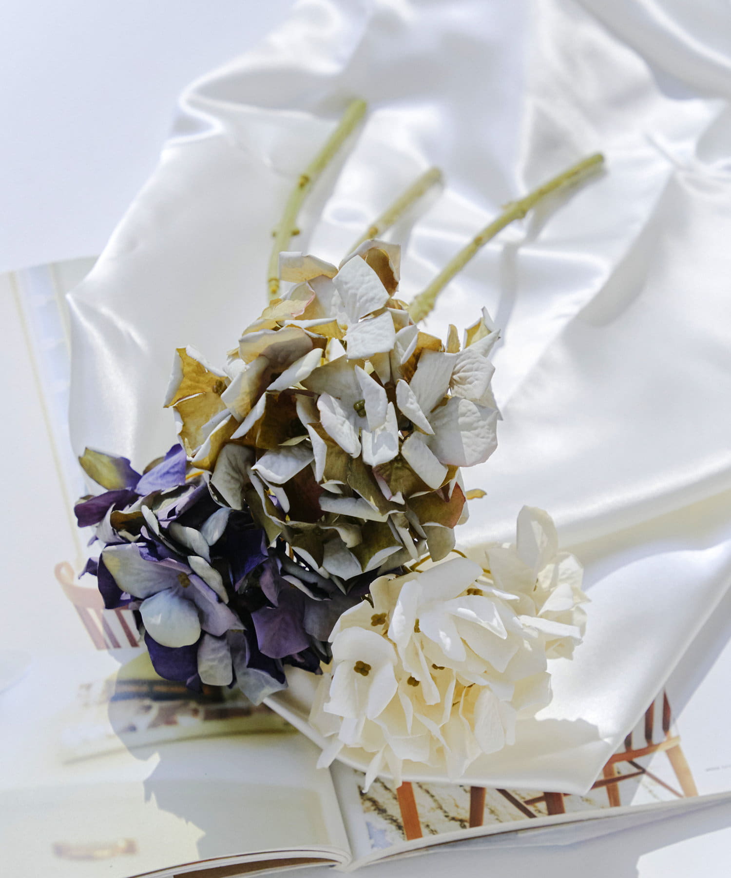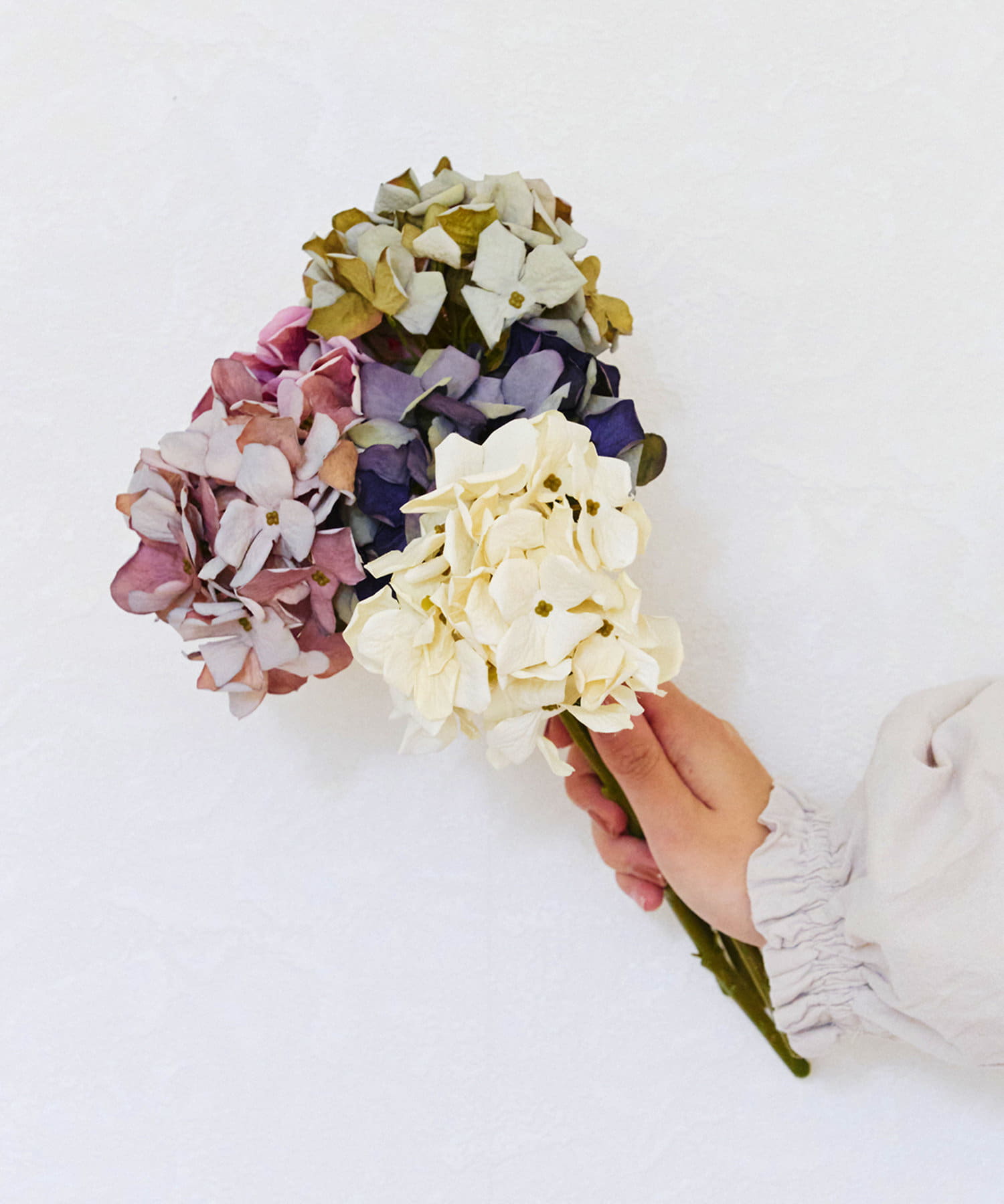 ●ドライフラワーのような、くすみ感がアンティークでオシャレな紫陽花のフェイクフラワー。